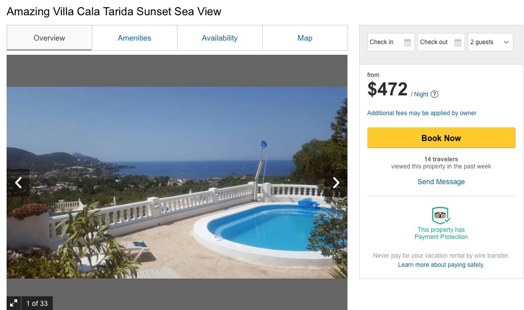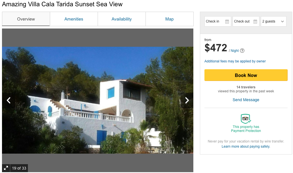 La casa que acogió la fiesta se promociona como una villa vacacional con cinco habitaciones, tres baños y con capacidad para nueve persona. Se alquila por 472 euros la noche.