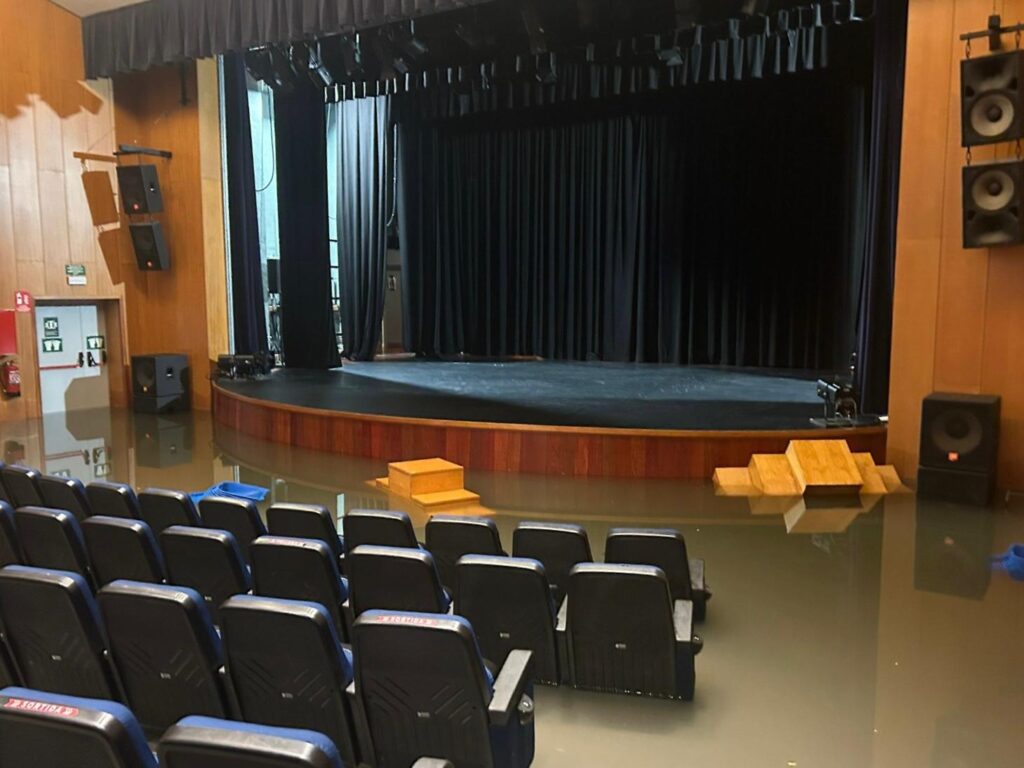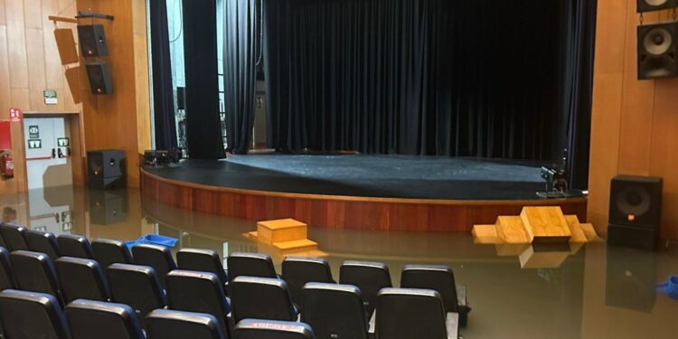 El agua ha llegado hasta las butacas y ha afectado gravemente a la instalación, al tocar la instalación eléctrica de sonido y otros recursos de la sala.