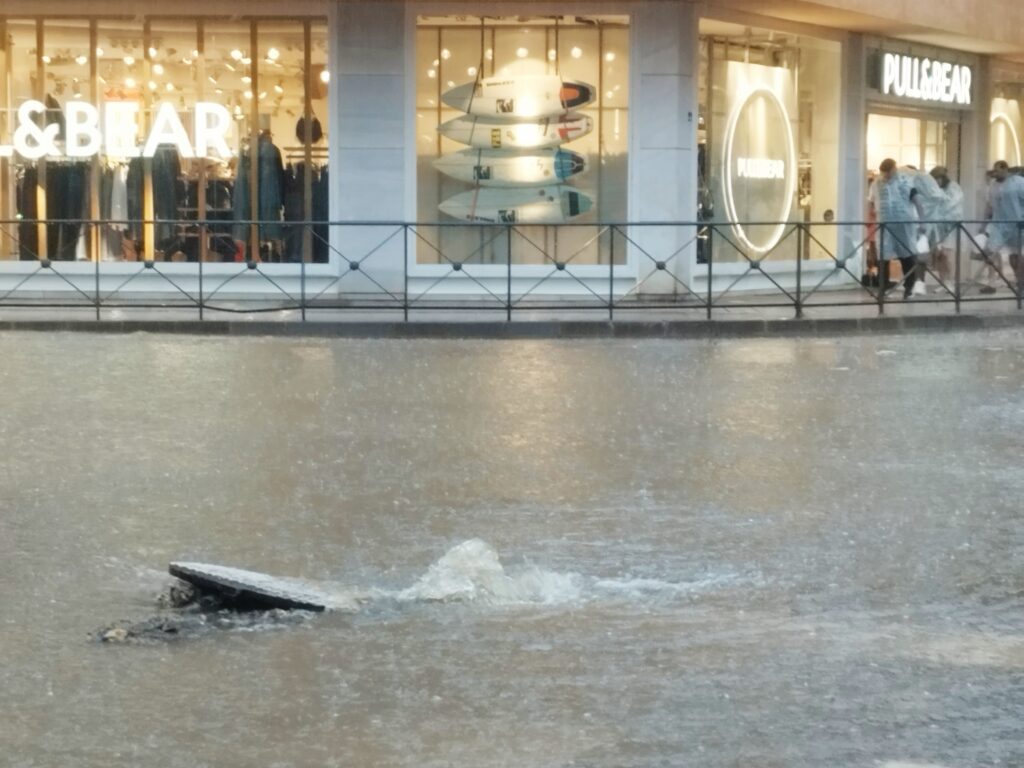 No ha sido necesario un gran temporal. Tan solo 25 litros por metro cuadrado entre las 15 y las 18 horas, según los registros de Aemet. Esa cantidad ha sido suficiente para que el sistema de saneamiento de la ciudad de Ibiza haya empezado a mostrar síntomas de desborde.