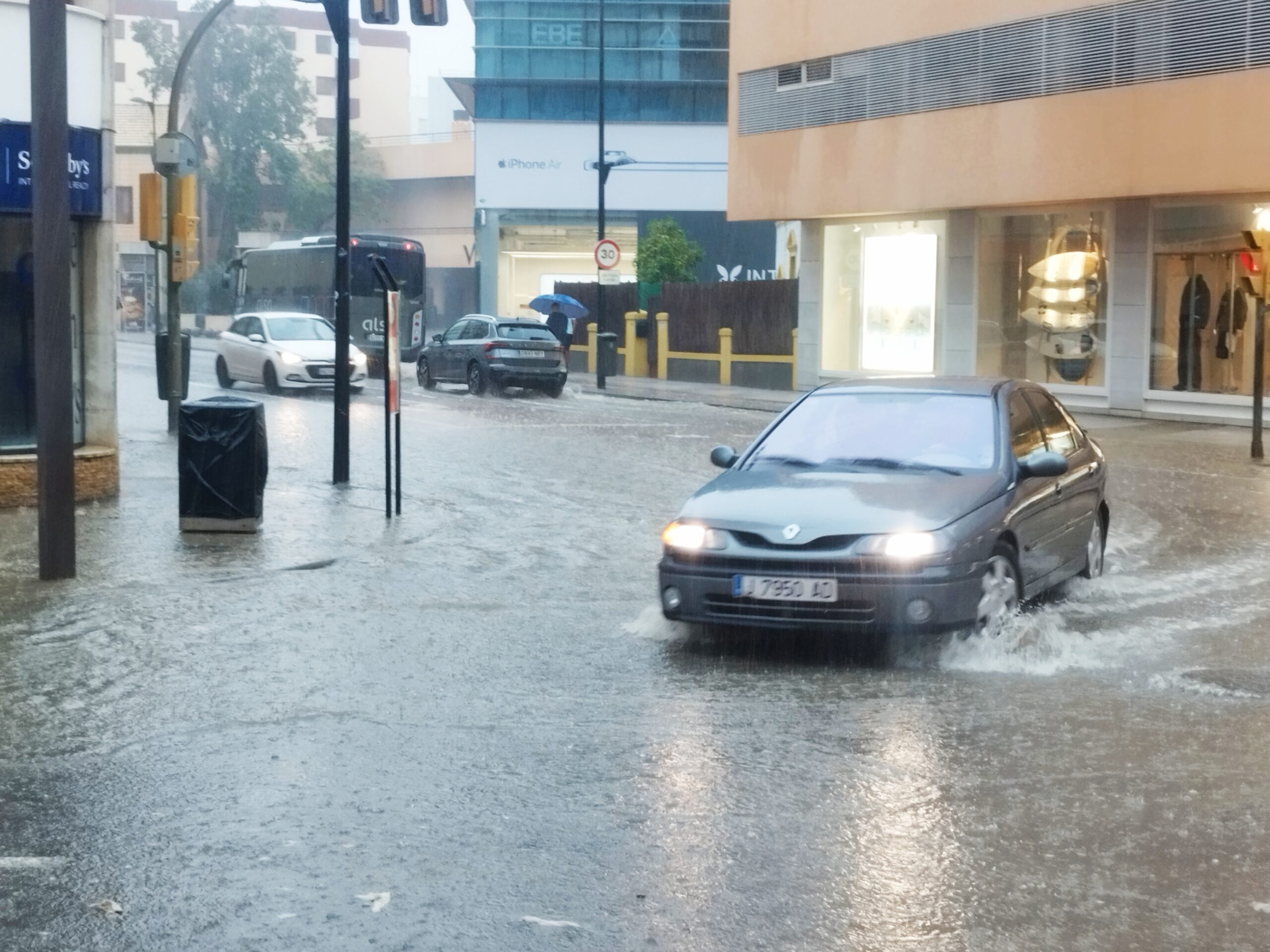 No se ha anegado, de momento, el barrio de es Pratet, aunque nadie las tiene consigo. Una estampa típica de esta tarde está siendo la de muchos comerciantes apostados en la entrada de sus negocios, atentos ante cualquier crecida del agua.