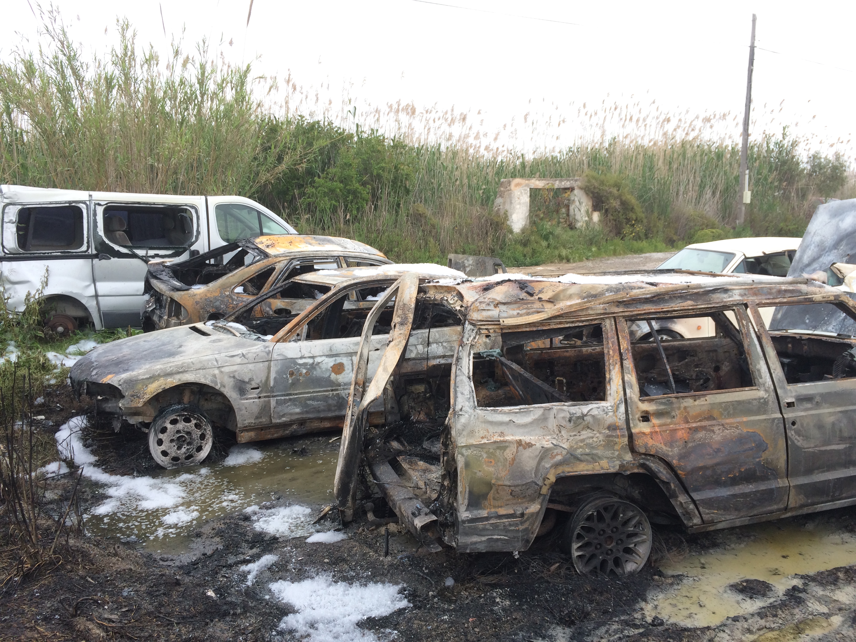 Un trabajador del taller ha asegurado esta mañana que los vehículos no pertenecen al establecimiento, ni a ninguno de sus clientes, y que se encontraban abandonados.