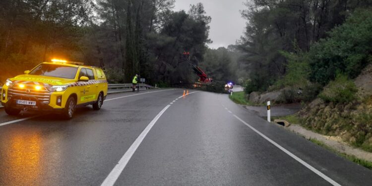 También se ha tenido que cortar temporalmente un tramo de la carretera de Sant Rafel, a la altura del cruce de los Cazadores, con el fin de retirar varios árboles caídos. La vía ha quedado ya reabierta al tráfico.