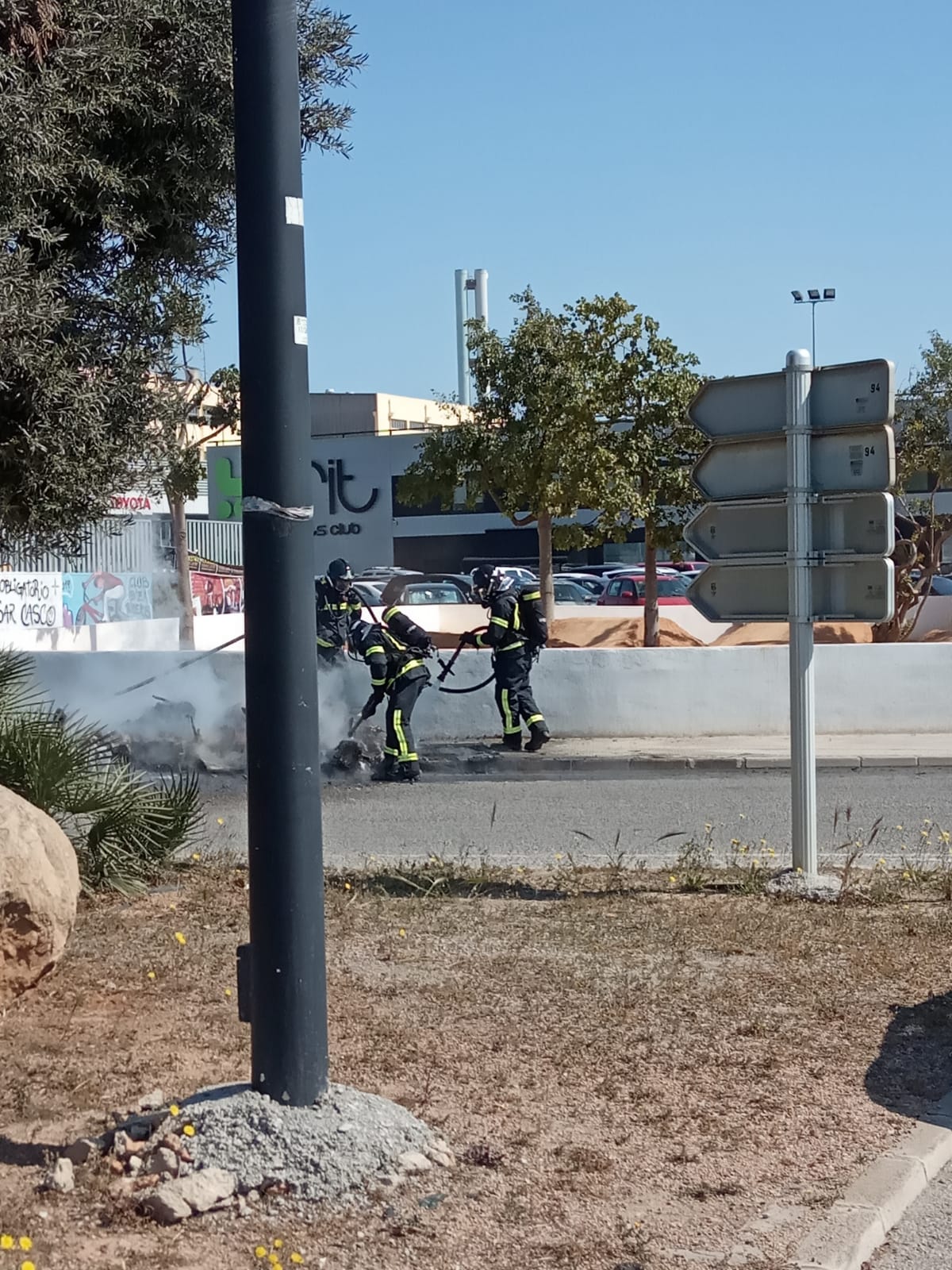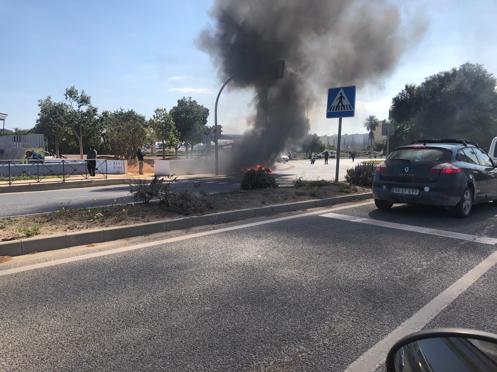 @Noudiari / Un coche de pequeña cilindrada, de los que se pueden utilizar sin el carné de conducir B, ha ardido la mañana de este martes mientras circulaba por la rotonda de Juan XXIII de Ibiza.
