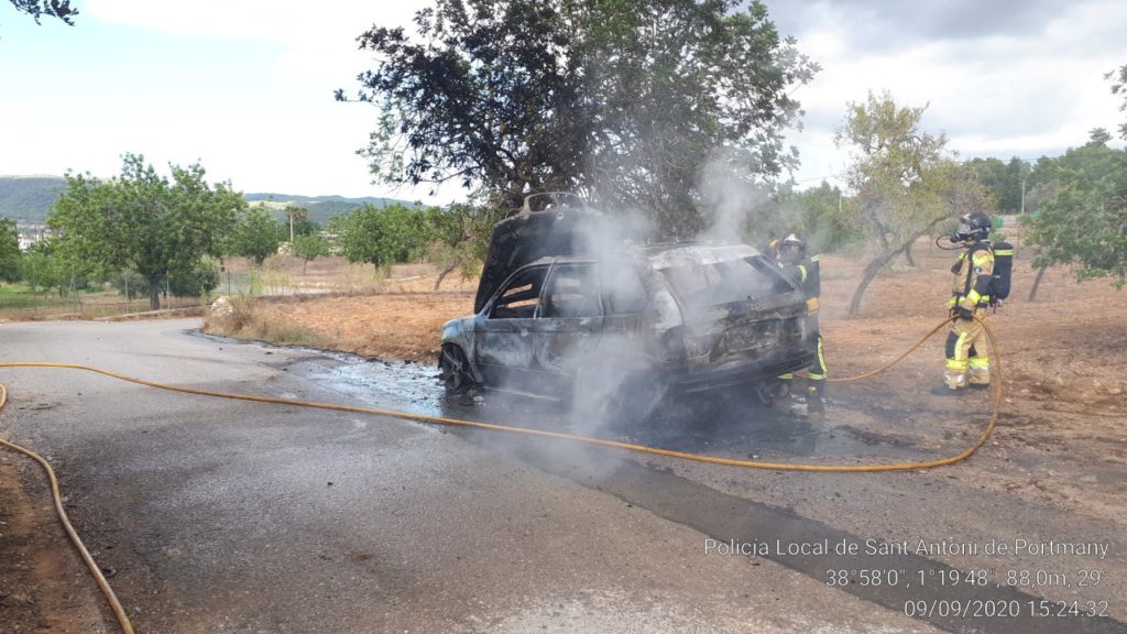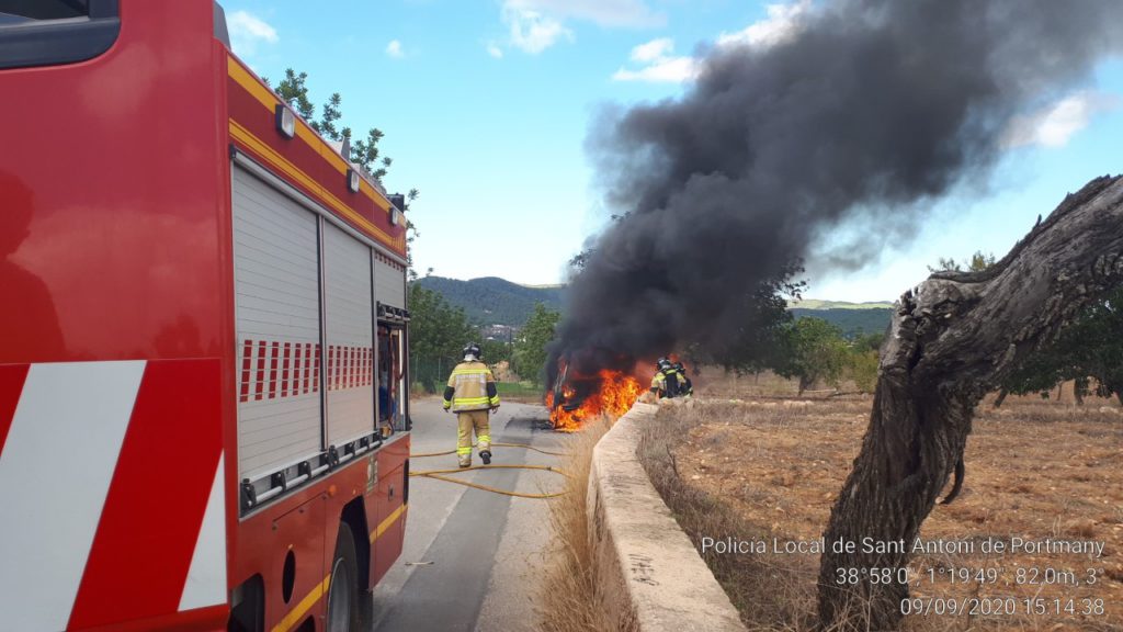 Arde un vehículo que circulaba por Ses Païses de Sant Antoni