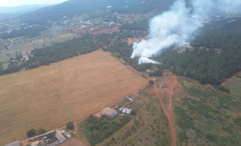 En las tareas de extinción han participado dos vehículos del Parque Insular de Bomberos de Ibiza y seis de sus efectivos además de una avioneta, un helicóptero y una autobomba y 16 brigadas del Ibanat, así como la Guardia Civil y la Policía Local del municipio de Santa Eulària.