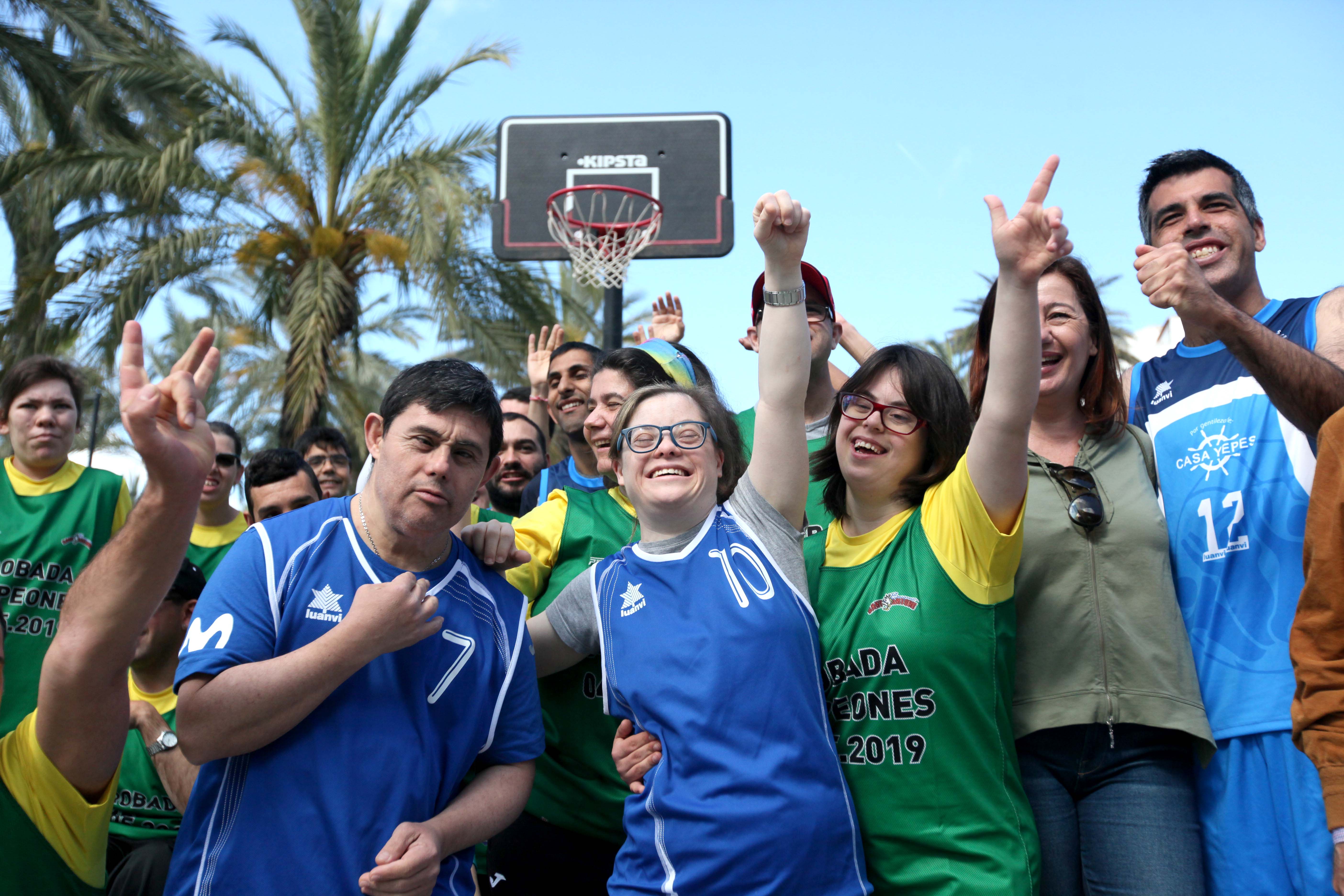EFE / La presidenta del Govern balear, Francina Armengol, se ha encontrado este sábado por la mañana con los protagonistas de la película «Campeones» en el Passeig de ses Fonts de Sant Antoni.