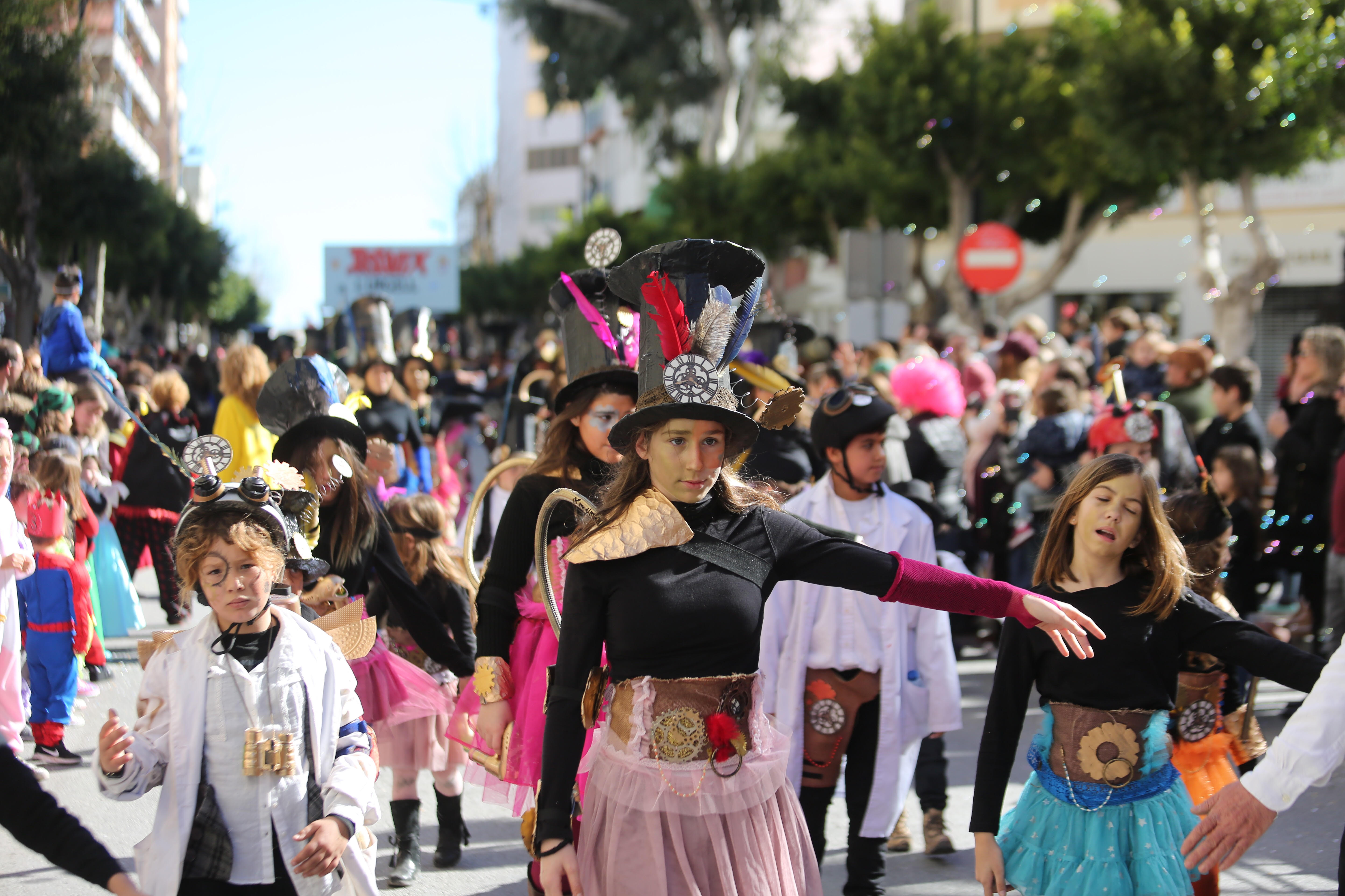 @Noudiari / Un total de 1.606 personas y 34 comparsas participan en la Rúa de Carnaval de Ibiza, que ha arrancado a las once y media de la mañana de este domingo desde el puerto de Vila y que en estos momentos recorre las calles de la ciudad a ritmo de música, con baile y mucha marcha e imaginación en la puesta en escena de los concursantes.