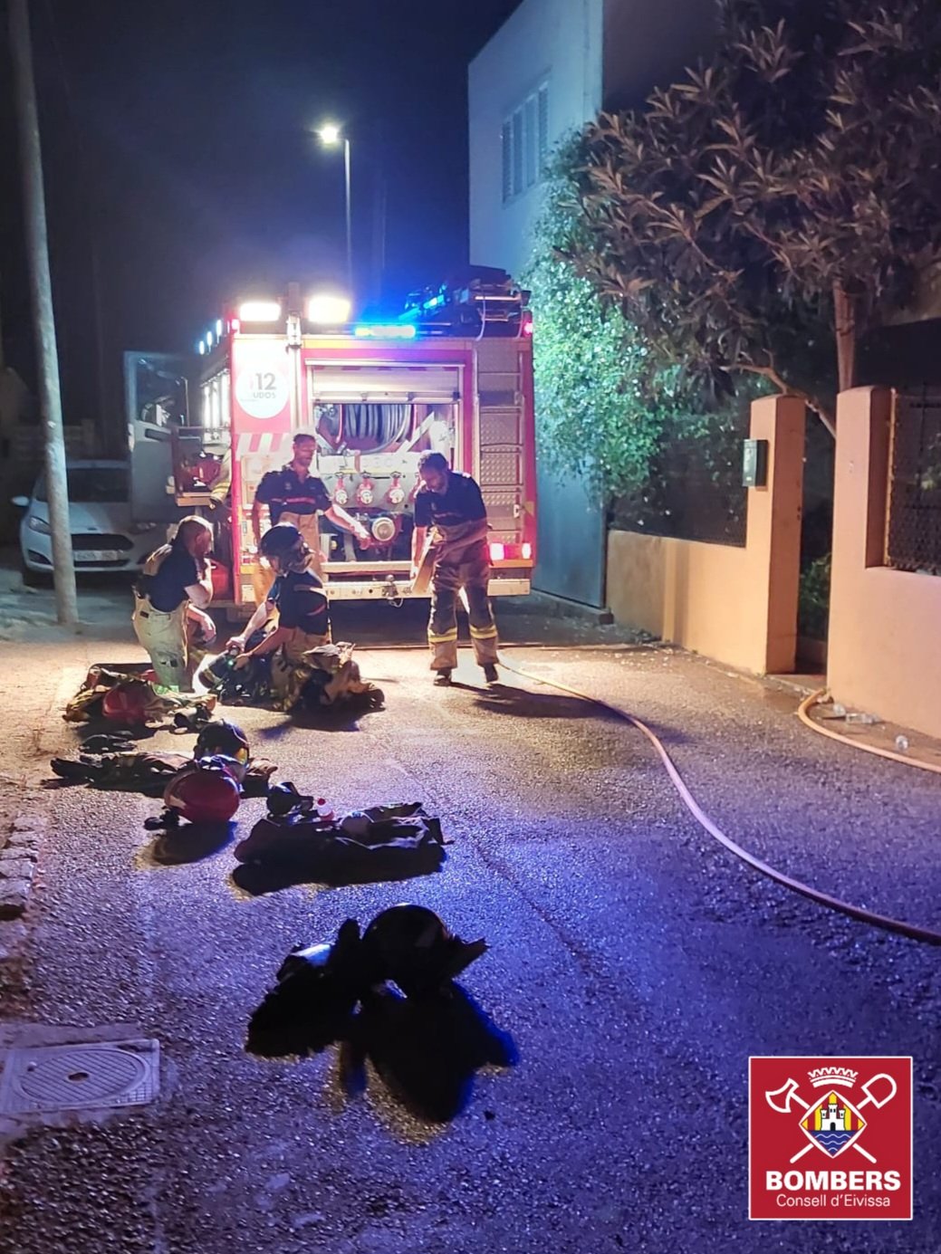 Imagen de los bomberos frente al domicilio de la víctima, la noche de los hechos. / Bombers d'Eivissa