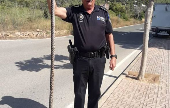 Han encontrado un ejemplar atropellado en la zona de Es Cubells, y tiene una longitud de 1.85 metros, a pesar de que lo común es que las adultas midan menos las adultas: «suelen tener un tamaño máximo de 150 cm. aunque en Baleares parece crecer por encima de estas medidas», apuntan los agentes.