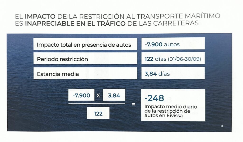 En la rueda de prensa aportaron datos de tráfico aéreo, que ha pasado de 4,6 millones en 2008 a 9 millones en 2024. Sin embargo, los datos de transporte marítimo que aportaron no incluyeron las cifras de la conexión por transporte marítimo entre Ibiza y Formentera. De ese modo, solo indicaron 716.781 pasajeros, un 3 por ciento menos que en 2008.