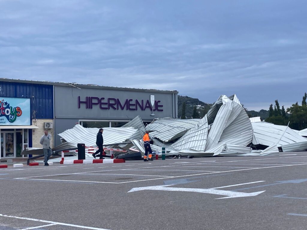 El material desprendido cayó sobre el parking del Eroski, impactando contra la barrera y la máquina de acceso. El recinto estaba cerrado en el momento del incidente, al ser domingo, por lo que no había vehículos estacionados ni se han registrado daños personales. Pese a ello, se estima que hay al menos un turismo y una furgoneta sepultados, pero estos no estaban en el aparcamiento sino estacionados en una zona cercana. Y es que las chapas desprendidas han llegado a las calles Ca les Ànimes (lado del eroski) y calle Can Xereco, junto a Fita,