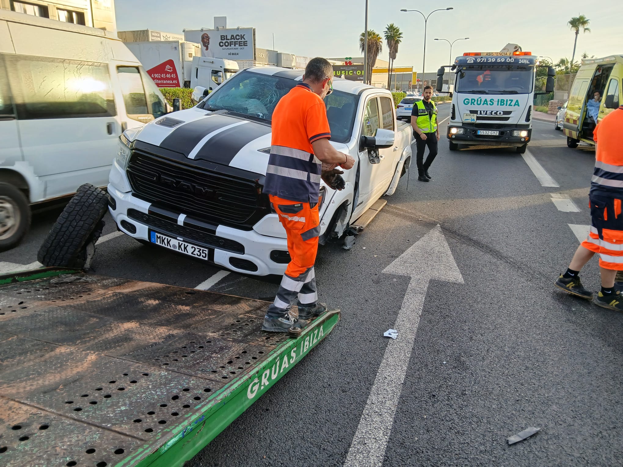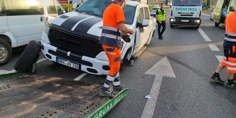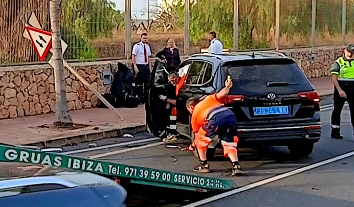 Un brutal accidente de tráfico ha provocado momentos de gran tensión esta mañana en la carretera del aeropuerto de Ibiza, a la altura de la antigua nave de Citubo. El choque, que ha implicado a dos vehículos todoterreno, ha dejado la vía bloqueada y a los coches completamente destrozados, aunque, de forma casi milagrosa, no se han registrado heridos graves.