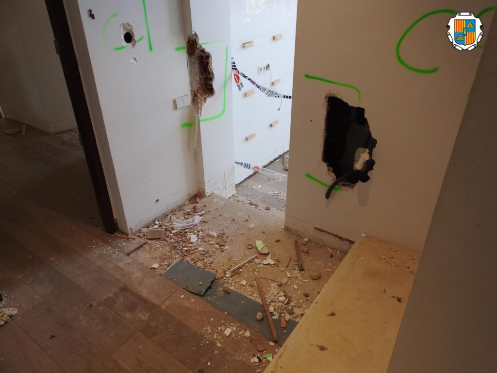Así, en uno de los vídeos grabados por la Policía Local se puede ver una parte del complejo reducido a escombros mientras trabaja una excavadora, mientras que en otro se aprecia que han sacado los muebles de una de las zonas residenciales para proceder al derribo de la estructura.