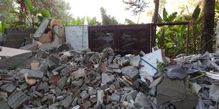 El Ayuntamiento de Sant Josep ha hecho públicas hoy unas imágenes del interior del complejo vacacional ilegal de Casa Lola, en Es Cubells, en la que se pueden ver unos 200 metros cuadrados de las construcciones ilegales reducidas a escombros.