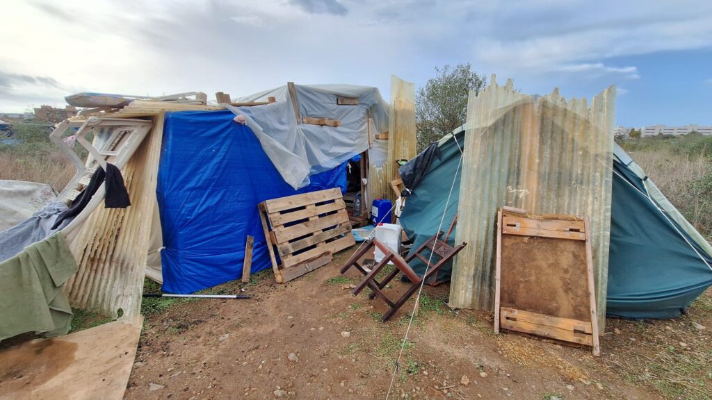 El sinhogarismo y la exclusión residencial se han convertido ya en un problema estructural en Ibiza. Este verano, el número de personas viviendo en chabolas, tiendas de campaña o vehículos aumentó un 66 %, alcanzando las 1.192 personas, de las cuales un 31 % (255 personas) permanecen en la isla tras el final de la temporada turística.