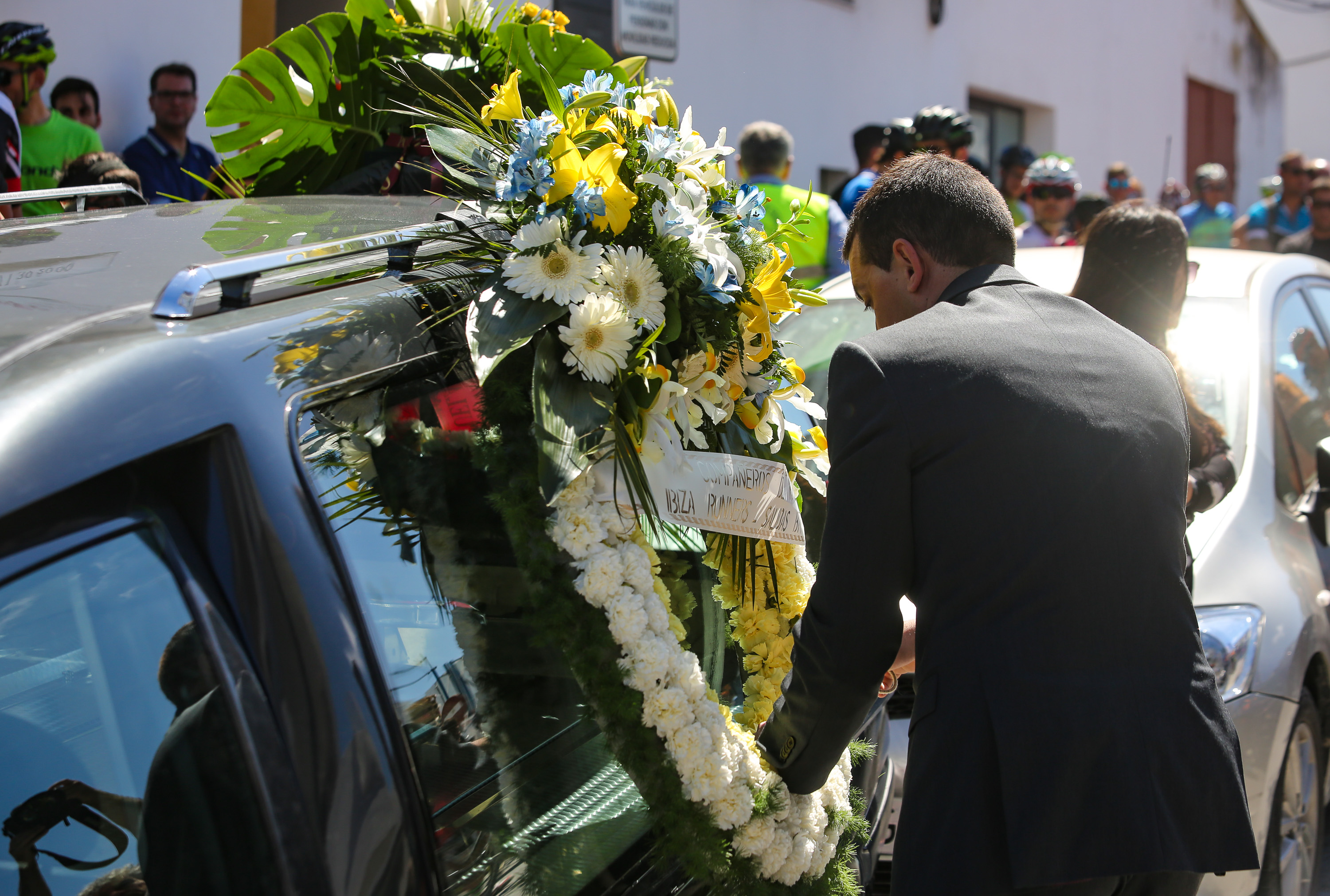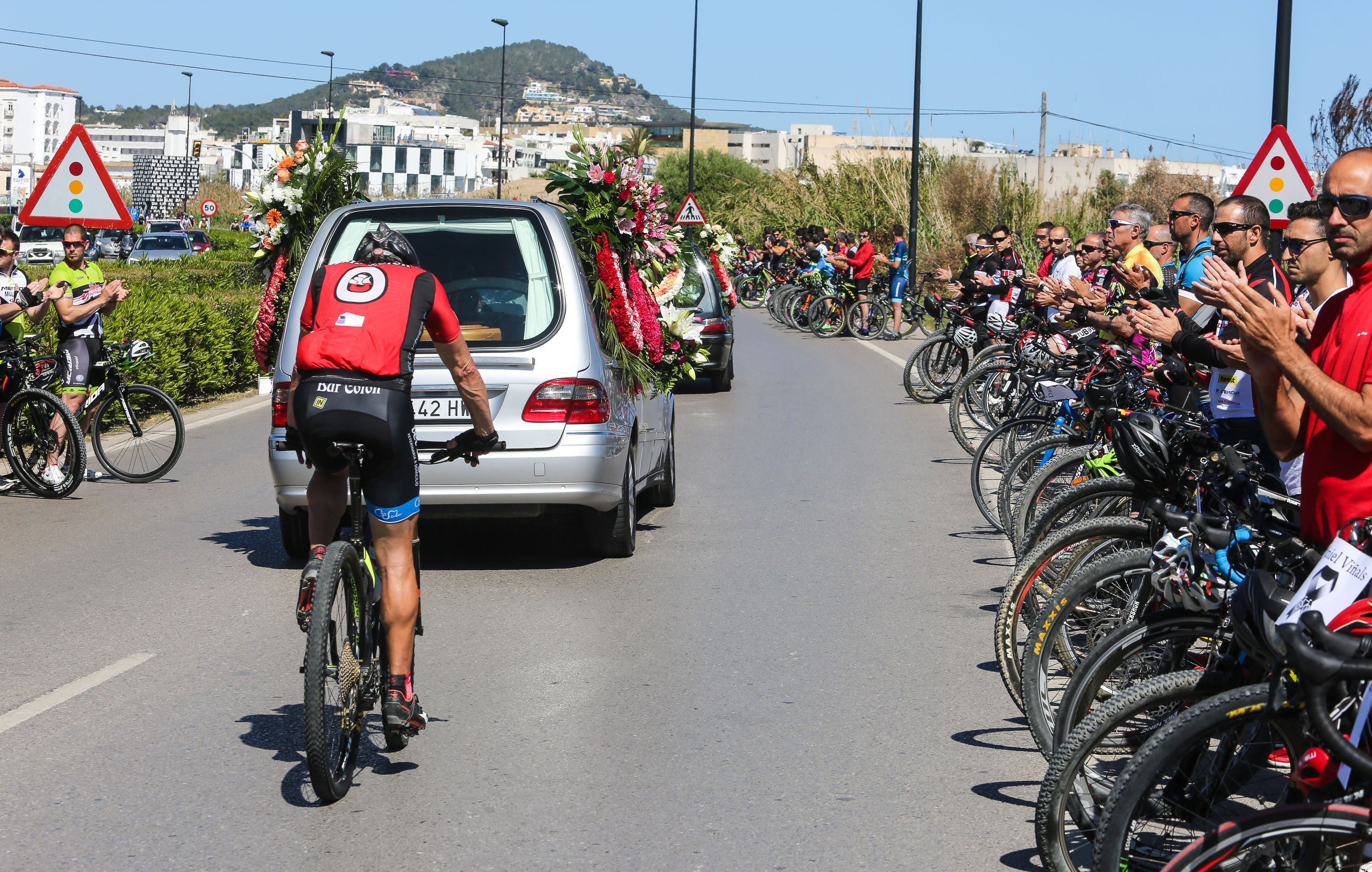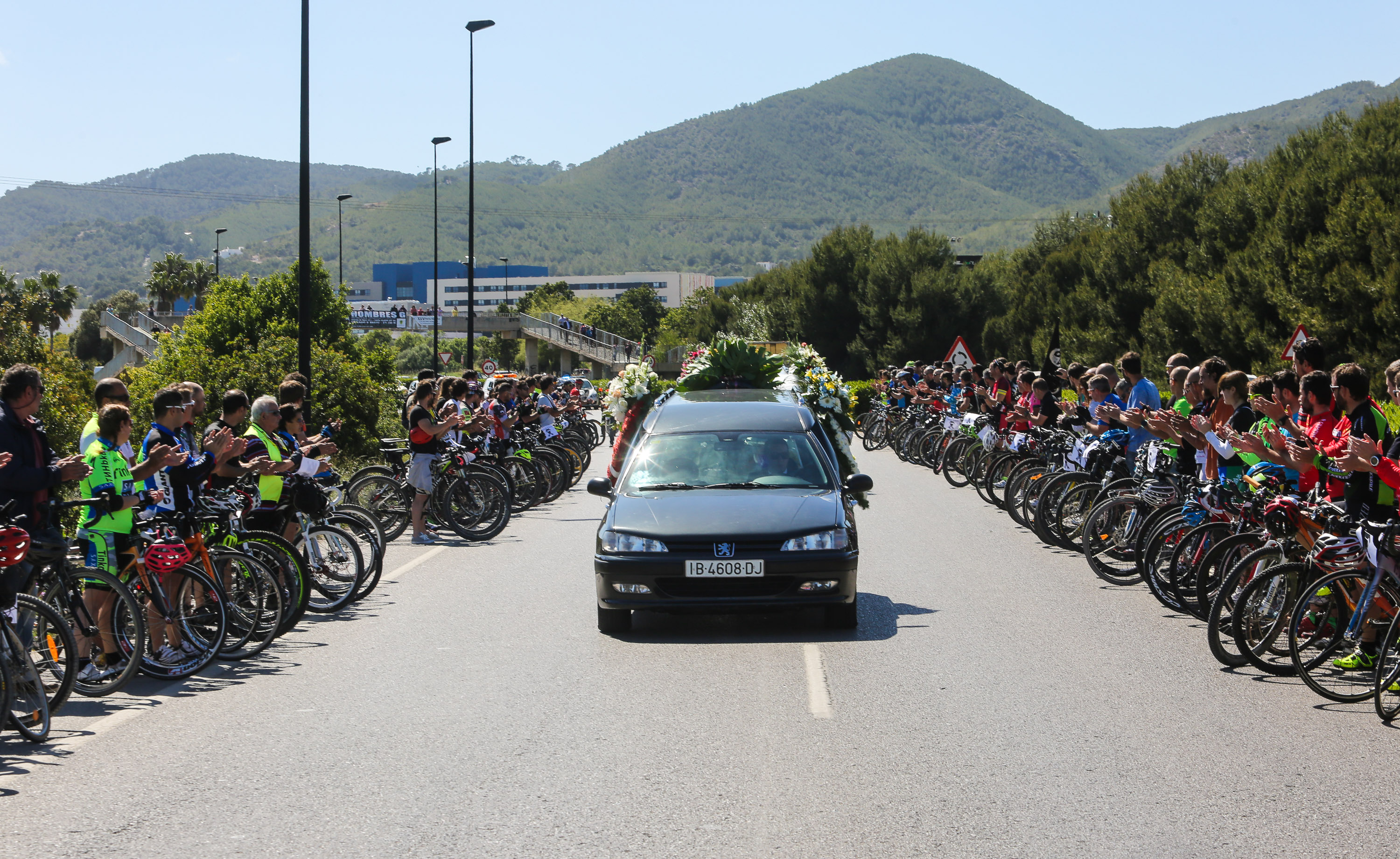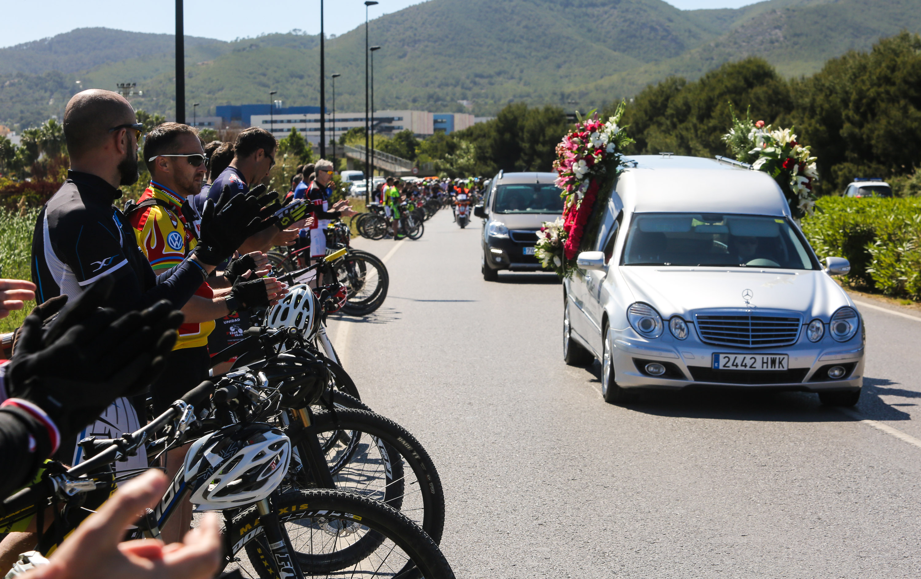 Formados en pelotón y subidos sobre sus bicis, los ciclistas han acompañado al coche fúnebre, desde la salida de Pompas Fúnebres y hasta la rotonda de los podencos, con el fin de homenajear al  joven de 34 años. Todos los asistentes han mostrado en los manillares de sus bicicletas el nombre de su compañero y amigo con un crespón negro.