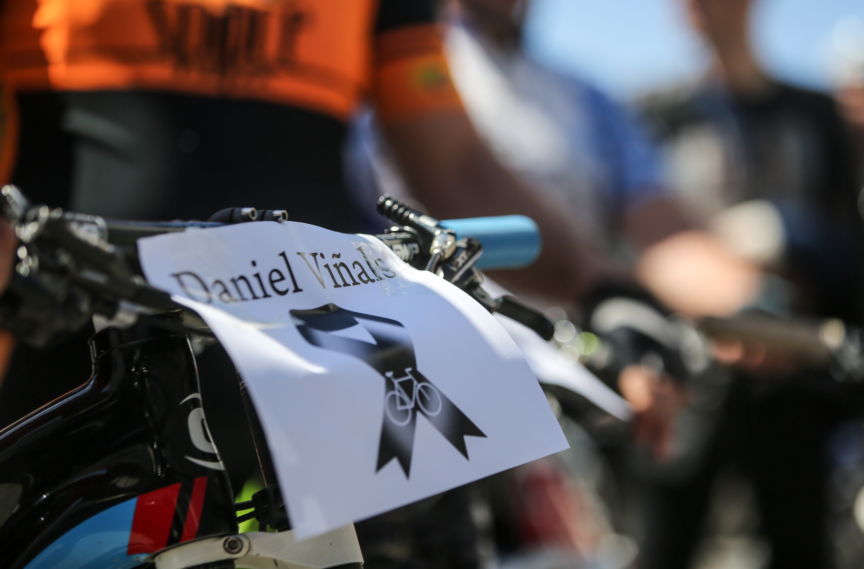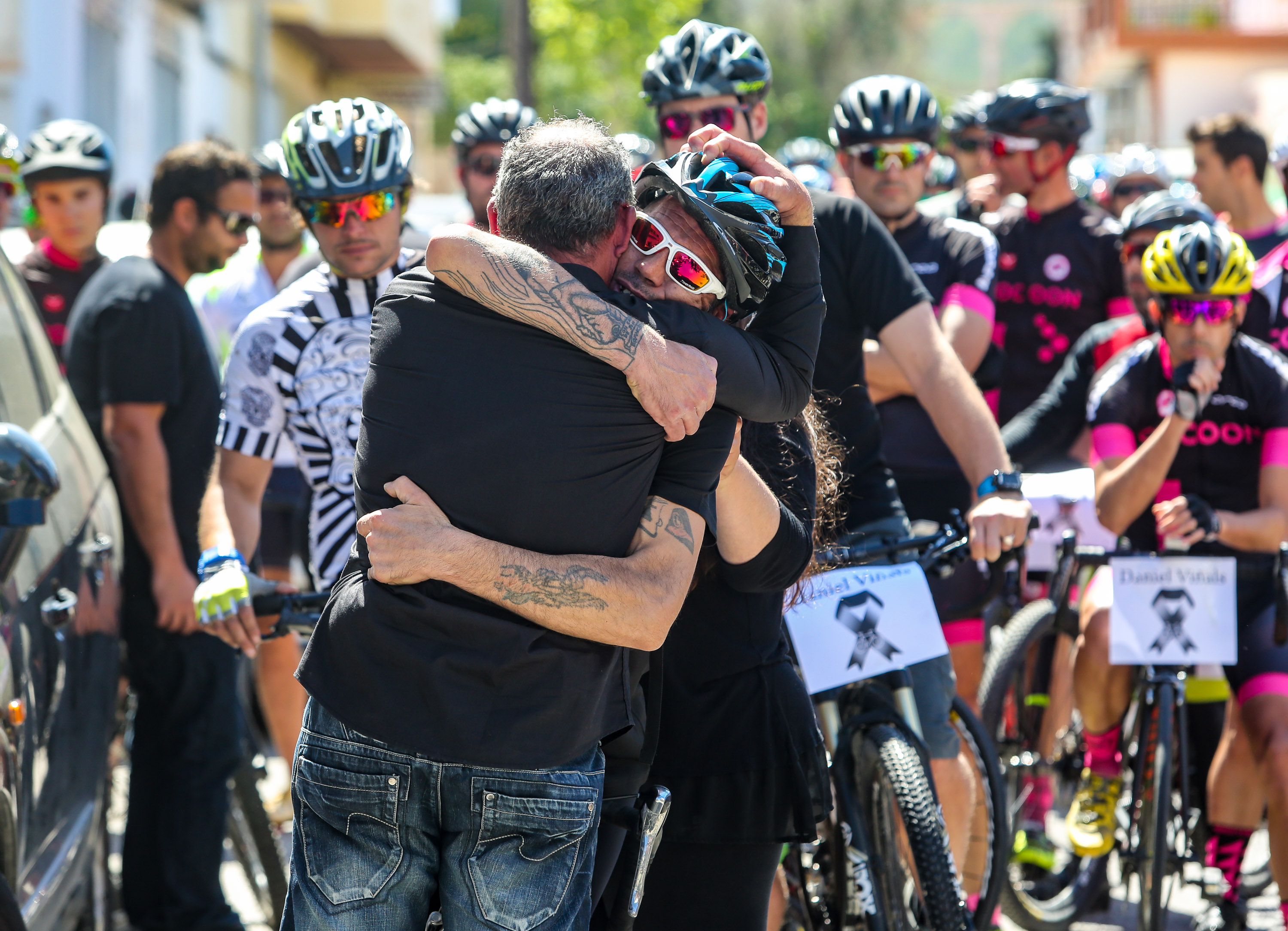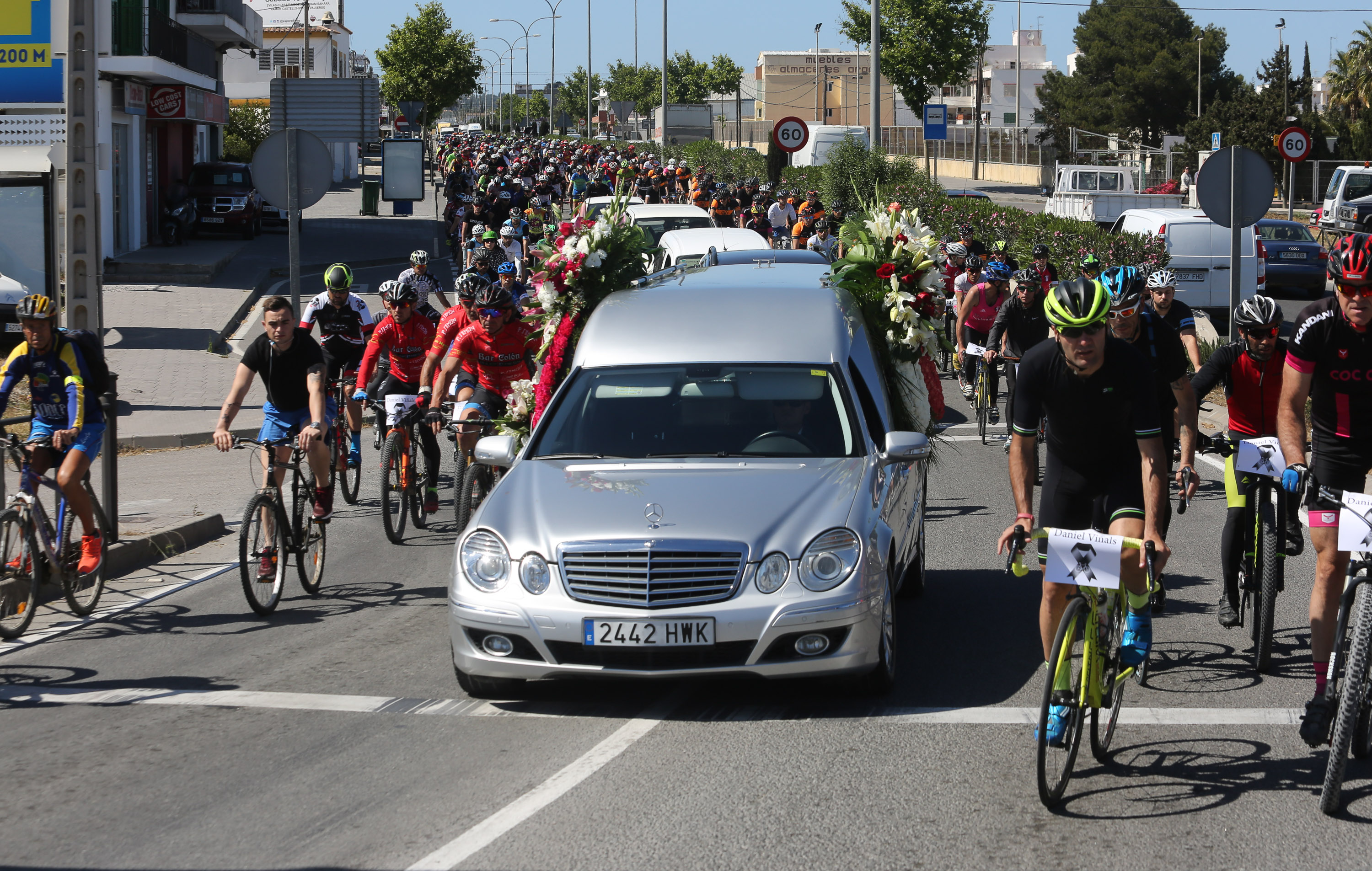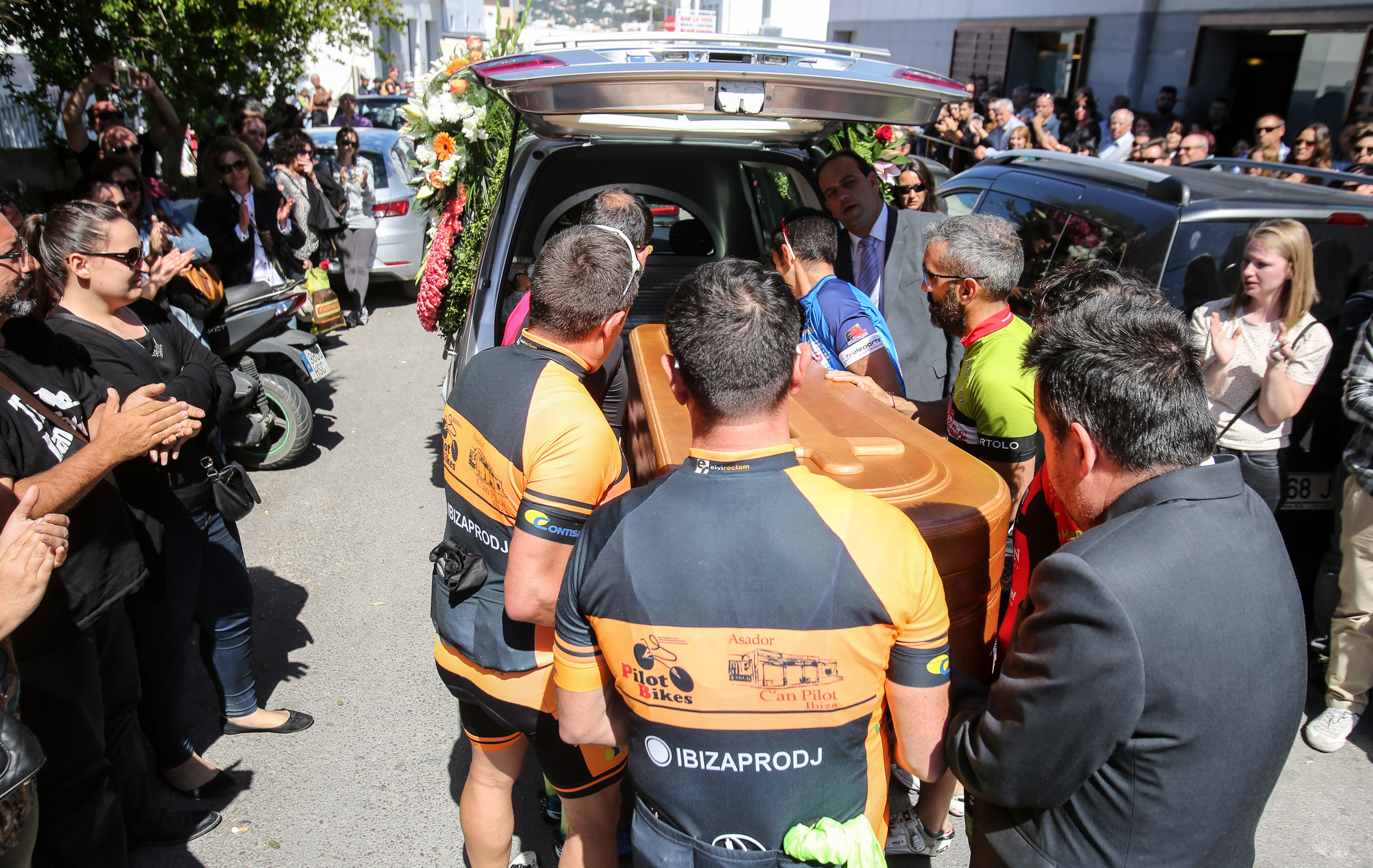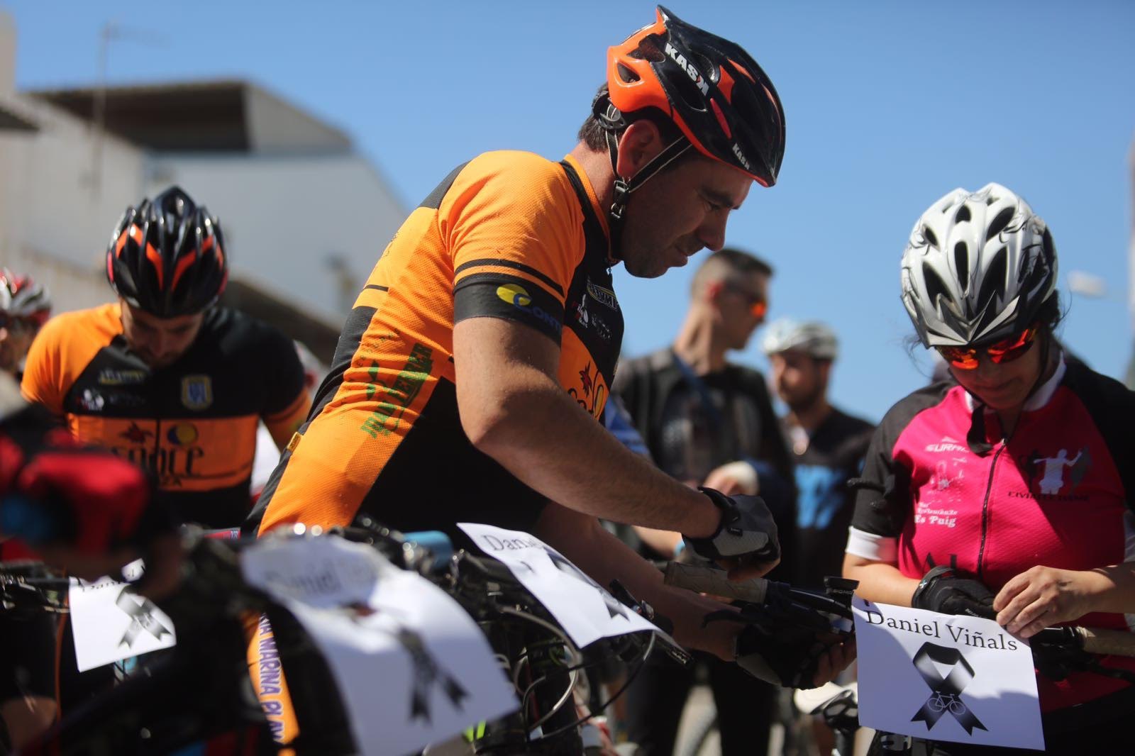 Formados en pelotón y subidos sobre sus bicis, los ciclistas han acompañado al coche fúnebre, desde la salida de Pompas Fúnebres y hasta la rotonda de los podencos, con el fin de homenajear al  joven de 34 años. Todos los asistentes han mostrado en los manillares de sus bicicletas el nombre de su compañero y amigo con un crespón negro.