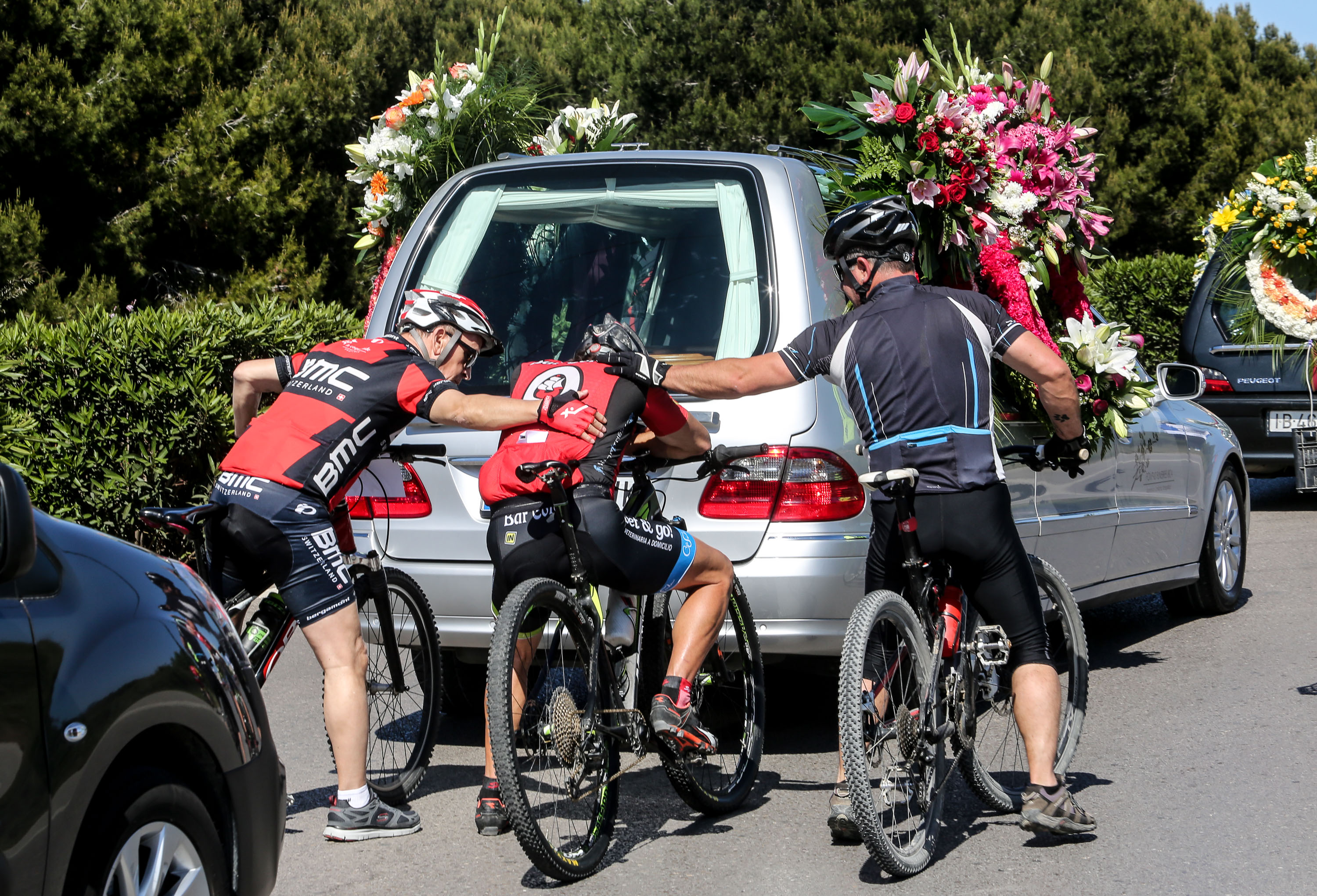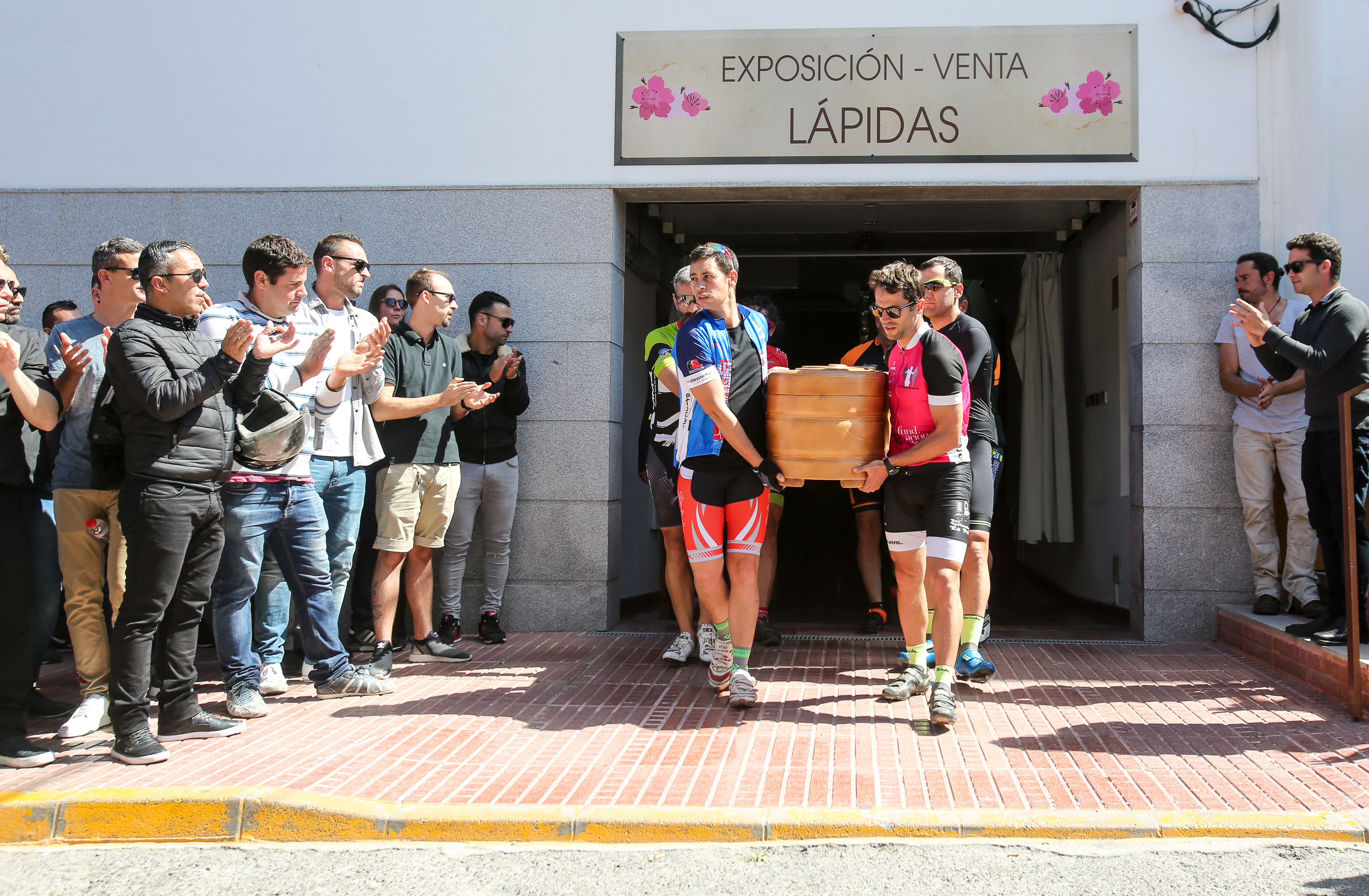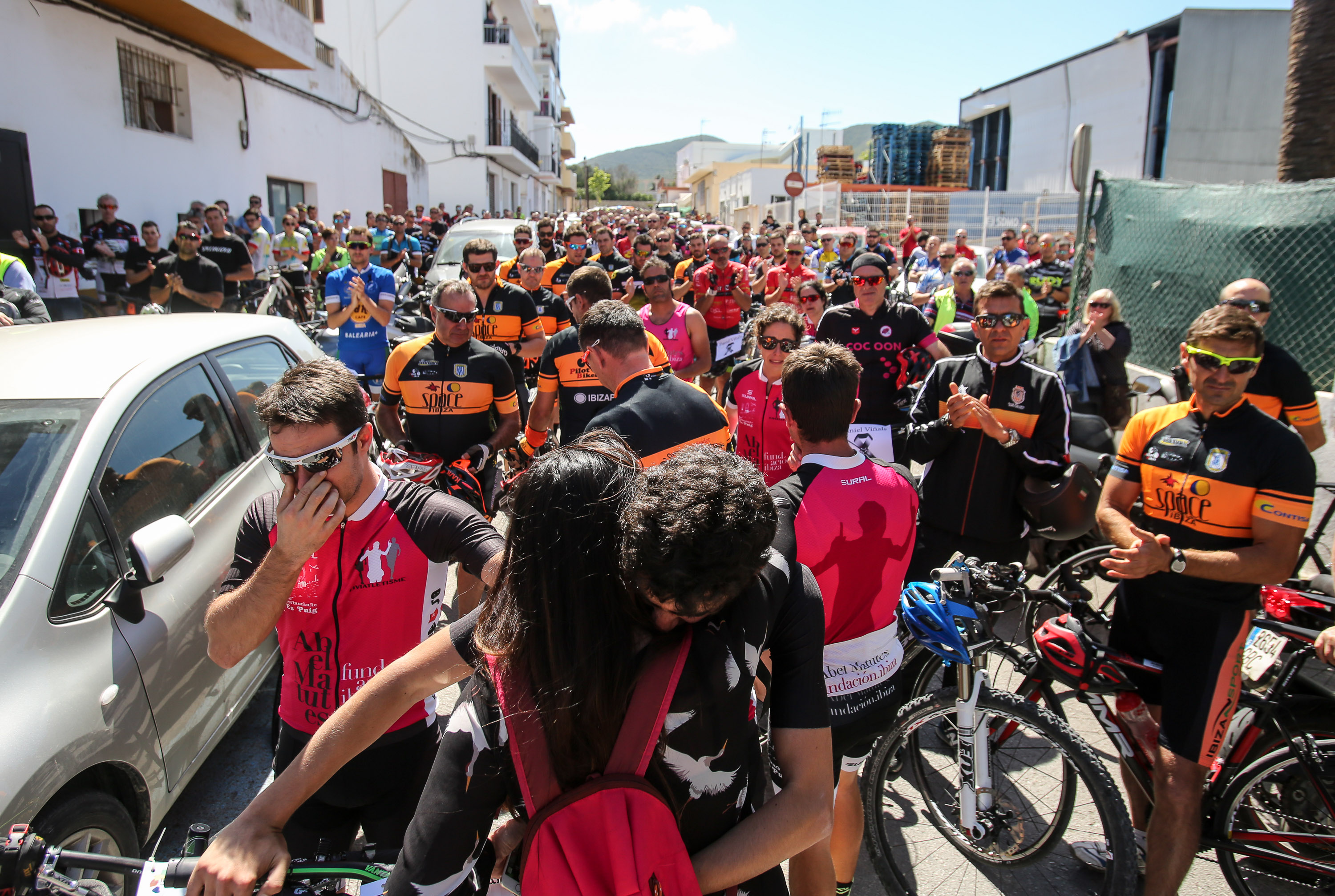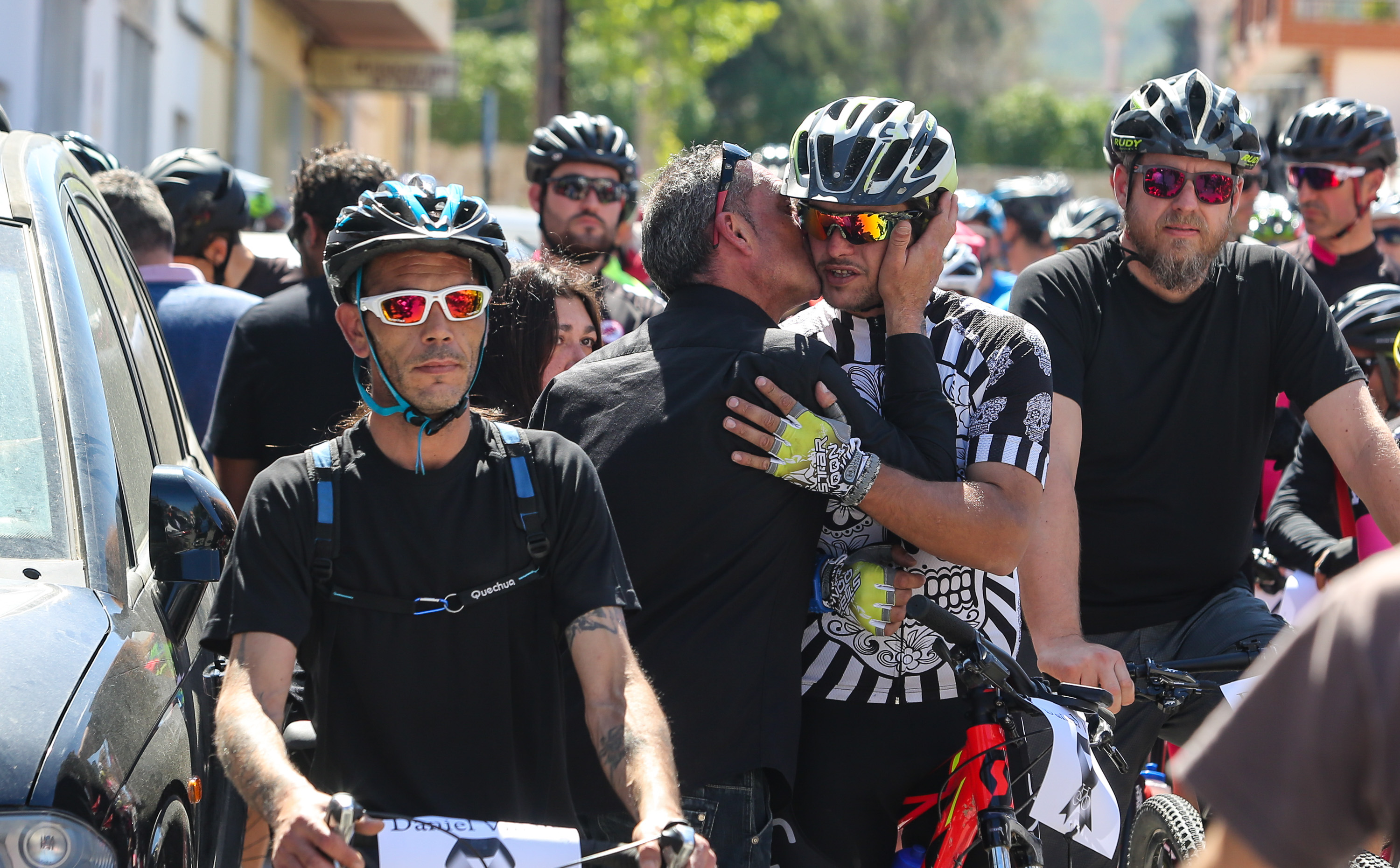 Formados en pelotón y subidos sobre sus bicis, los ciclistas han acompañado al coche fúnebre, desde la salida de Pompas Fúnebres y hasta la rotonda de los podencos, con el fin de homenajear al  joven de 34 años. Todos los asistentes han mostrado en los manillares de sus bicicletas el nombre de su compañero y amigo con un crespón negro.
