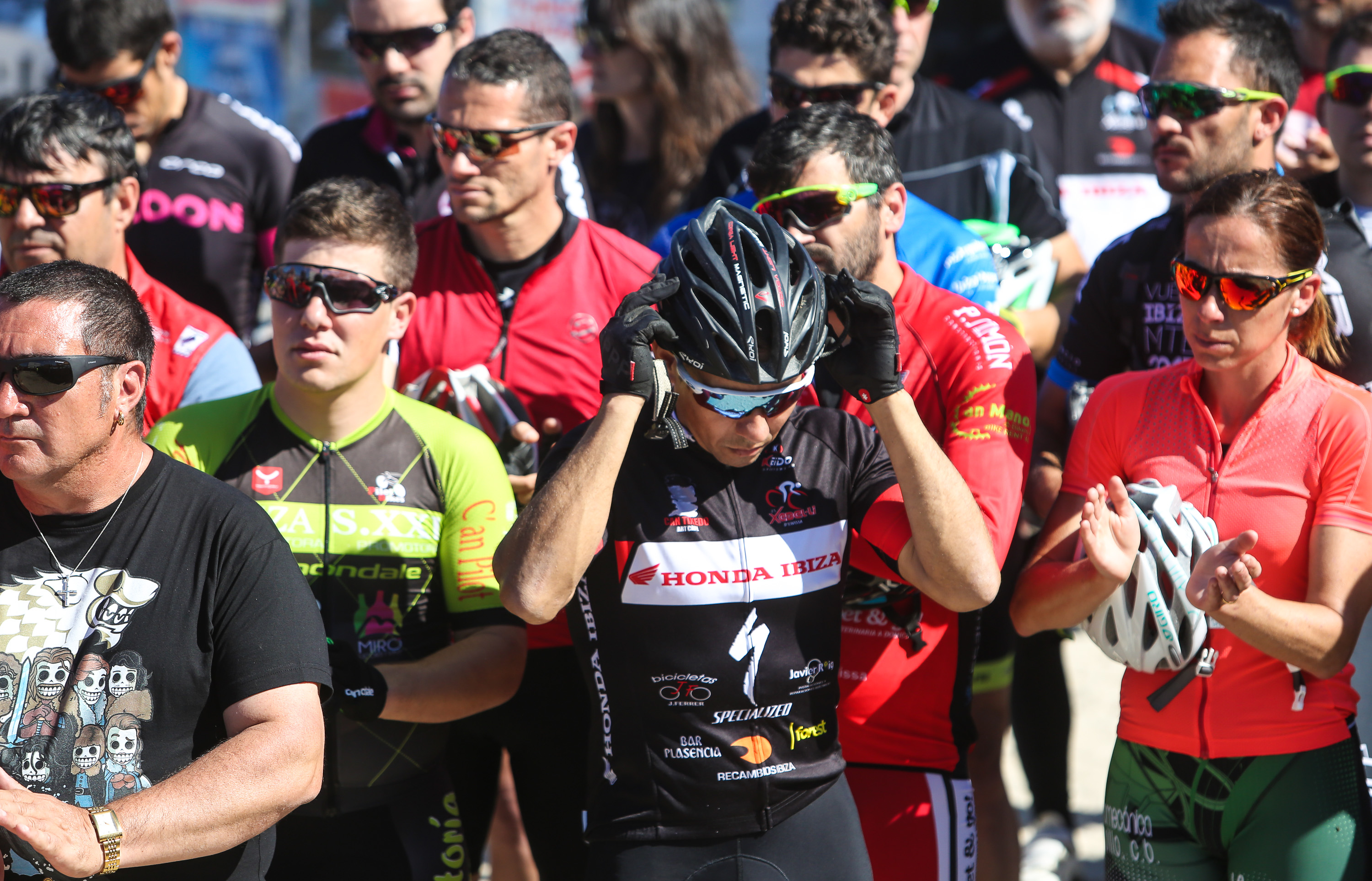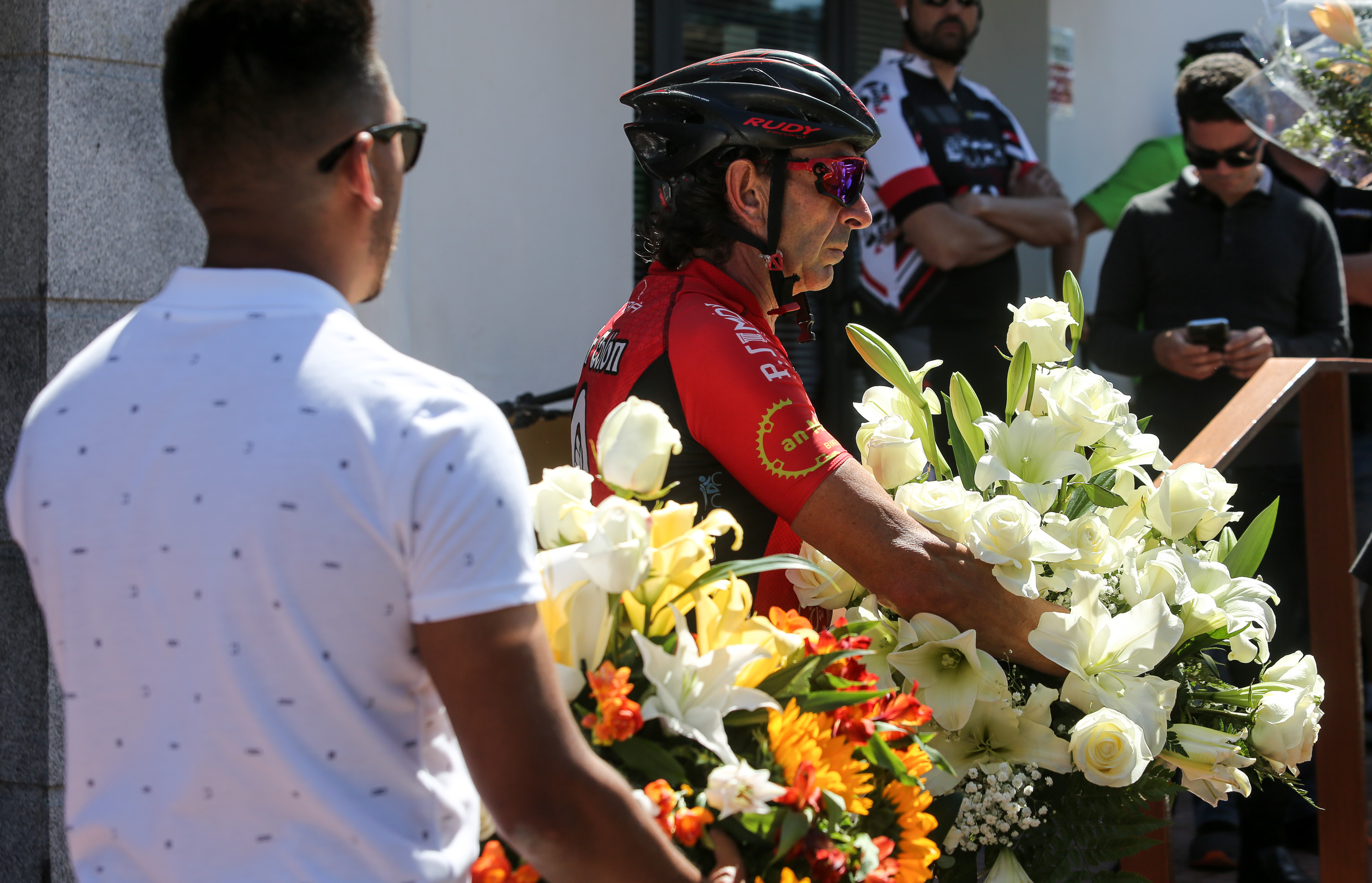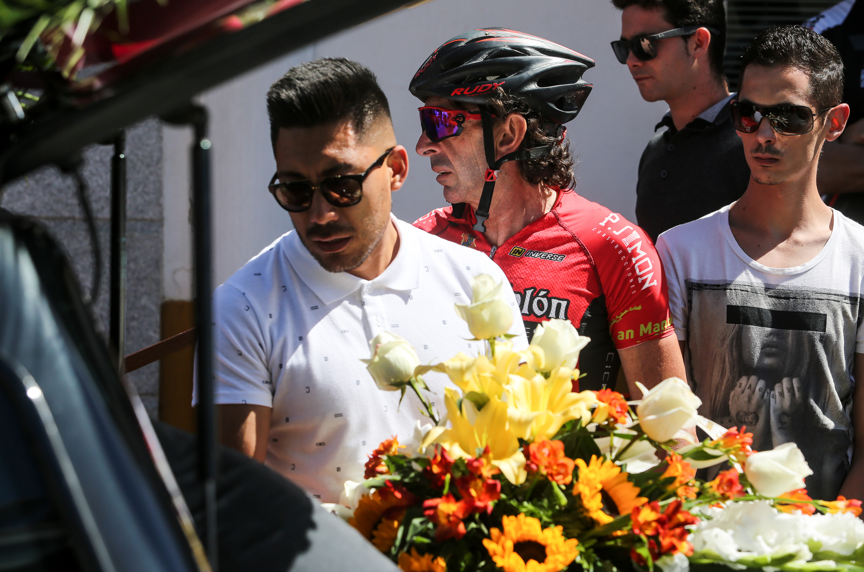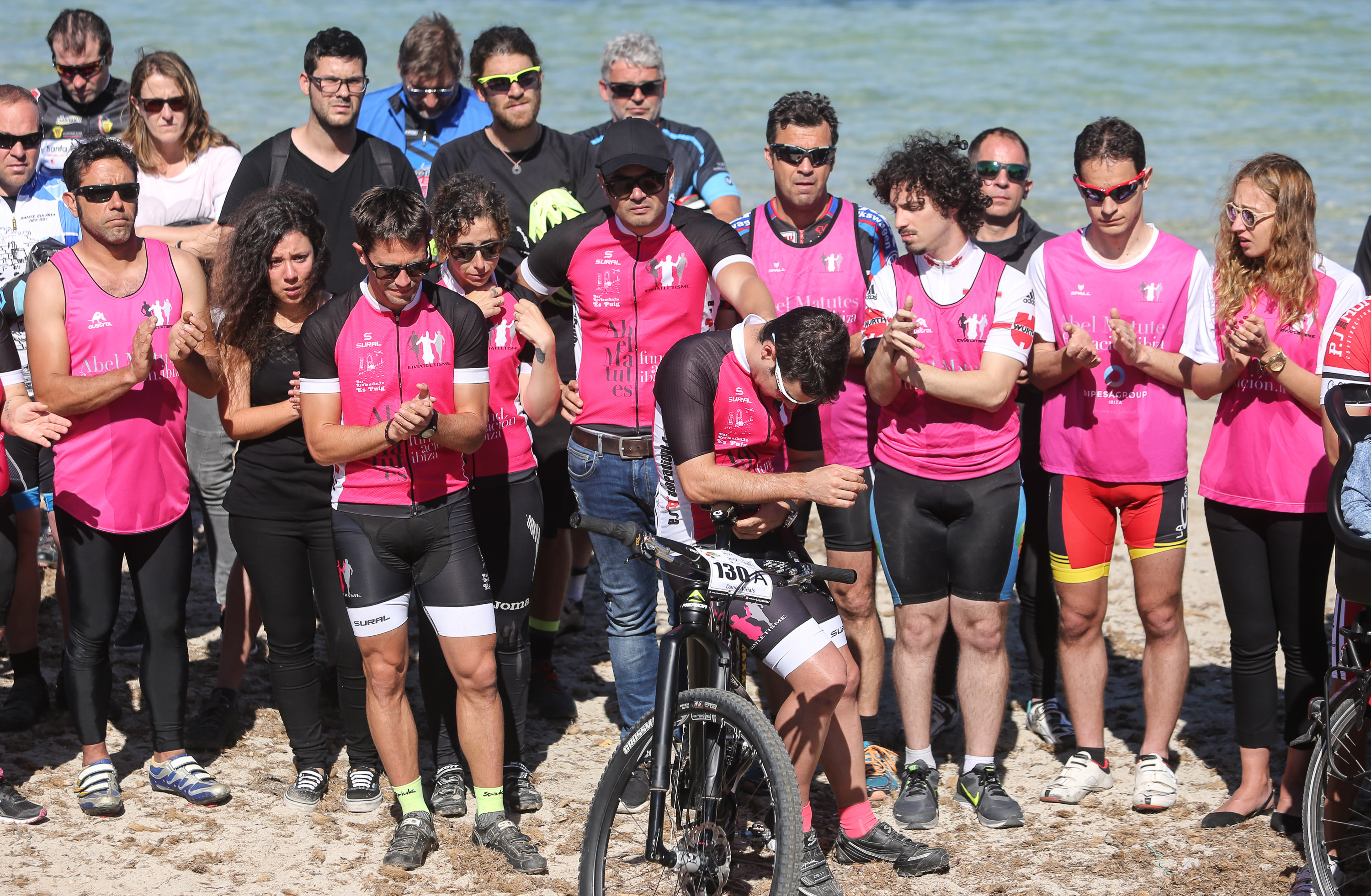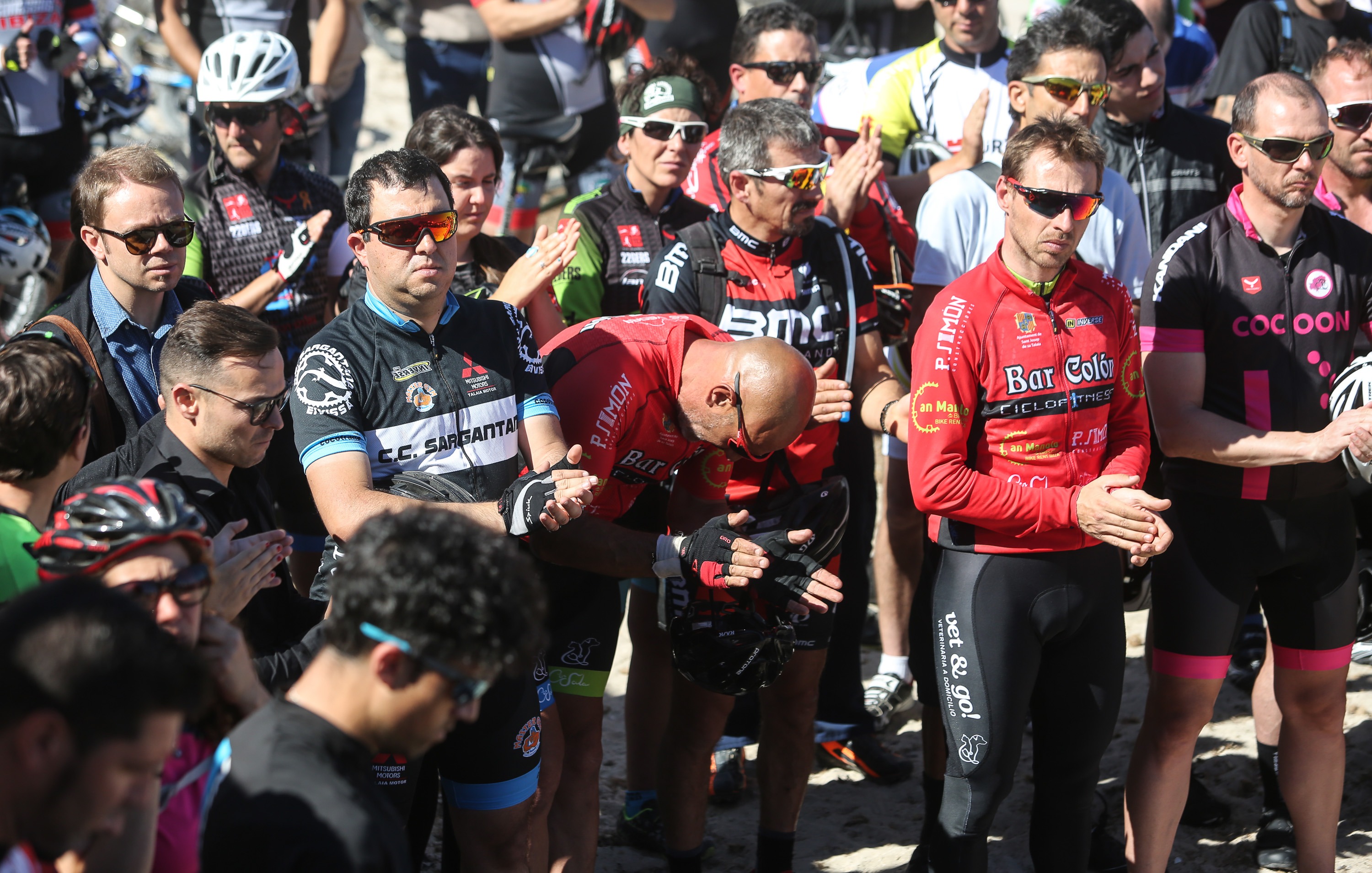 Formados en pelotón y subidos sobre sus bicis, los ciclistas han acompañado al coche fúnebre, desde la salida de Pompas Fúnebres y hasta la rotonda de los podencos, con el fin de homenajear al  joven de 34 años. Todos los asistentes han mostrado en los manillares de sus bicicletas el nombre de su compañero y amigo con un crespón negro.