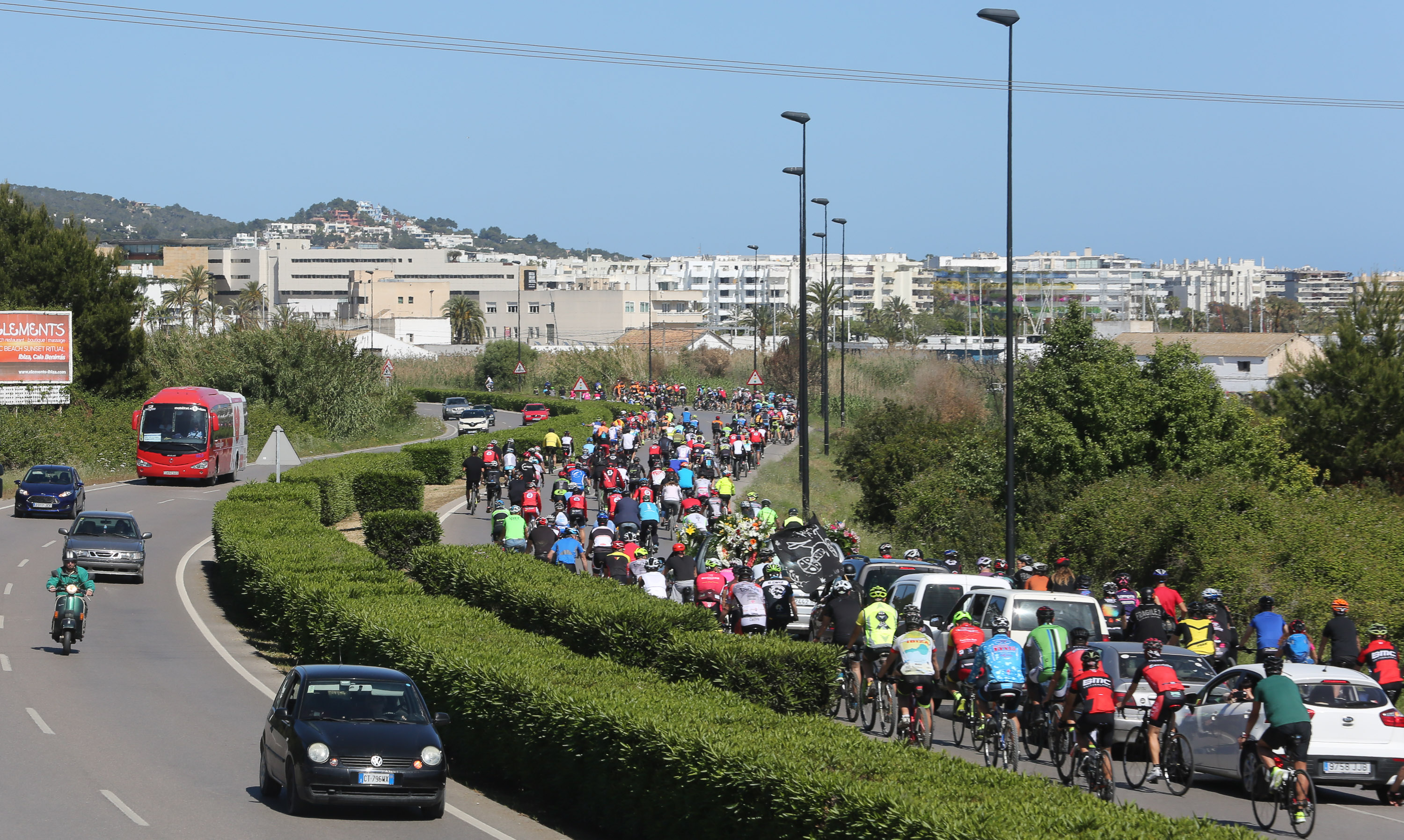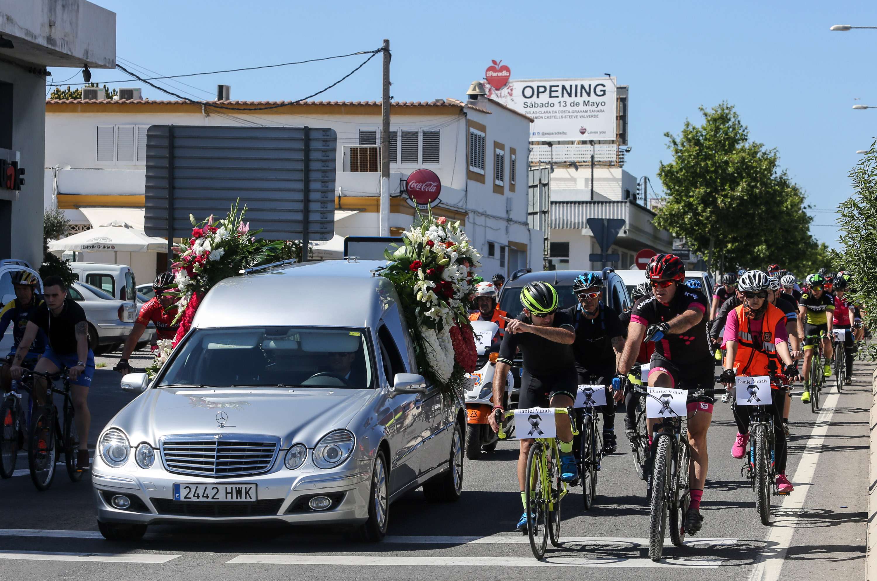Un millar de  ciclistas acompañaron el coche fúnebre hasta el primer cinturón de ronda, la E-10, donde realizaron un pasillo para dejar paso al vehículo que portaba los restos mortales de Viñals. Posteriormente el pelotón se trasladó hasta la playa de Talamanca donde guardaron un minuto de silencio en recuerdo al joven fallecido a los 34 años.