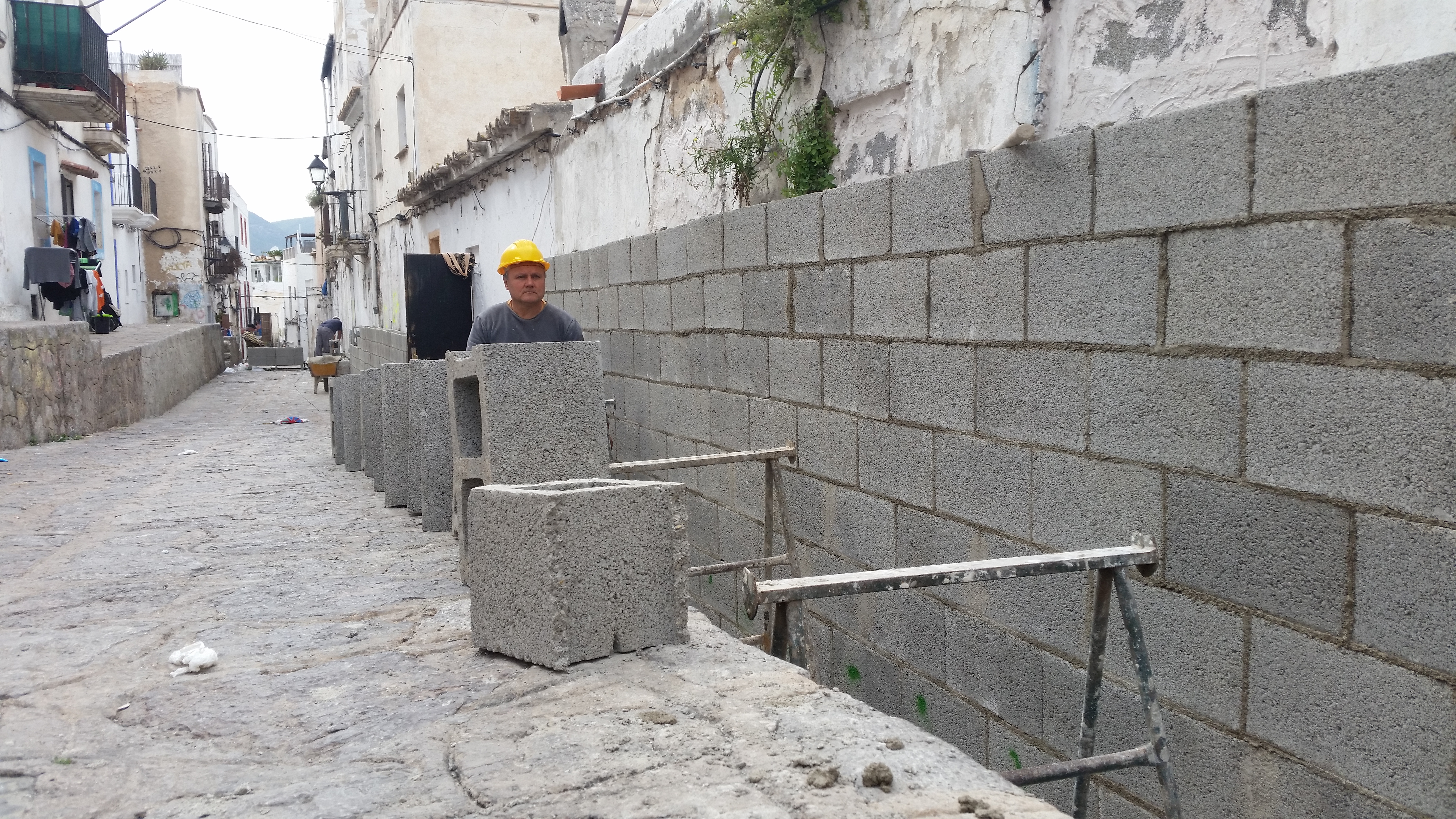 @Noudiari/El Ayuntamiento de Ibiza ha comenzado hoy a levantar el muro con el que pretende blindar las viviendas desalojadas de las calles Alt i Retir de Sa Penya, para evitar que sean ocupadas nuevamente.