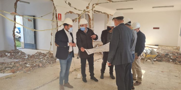 El conseller de Medi Ambient i Territori, Miquel Mir, el gerente del Institut Balear de la Natura (IBANAT), Joan Ramon, el presidente del Consell de Eivissa, Vicent Marí, y el conseller insular de Presidencia y Gestión Ambiental, Vicente Roig, han visitado, este miércoles, las obras de rehabilitación y adecuación del edificio 201 del Centro insular de servicios de sa Coma.