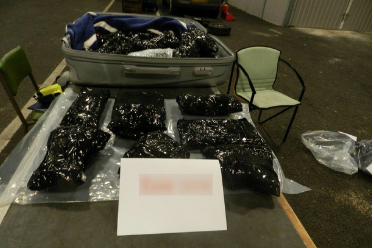 En la inspección, los oficiales de aduanas encontraron 67.000 tabletas de éxtasis divididas en 67 paquetes dentro de una caja plateada.