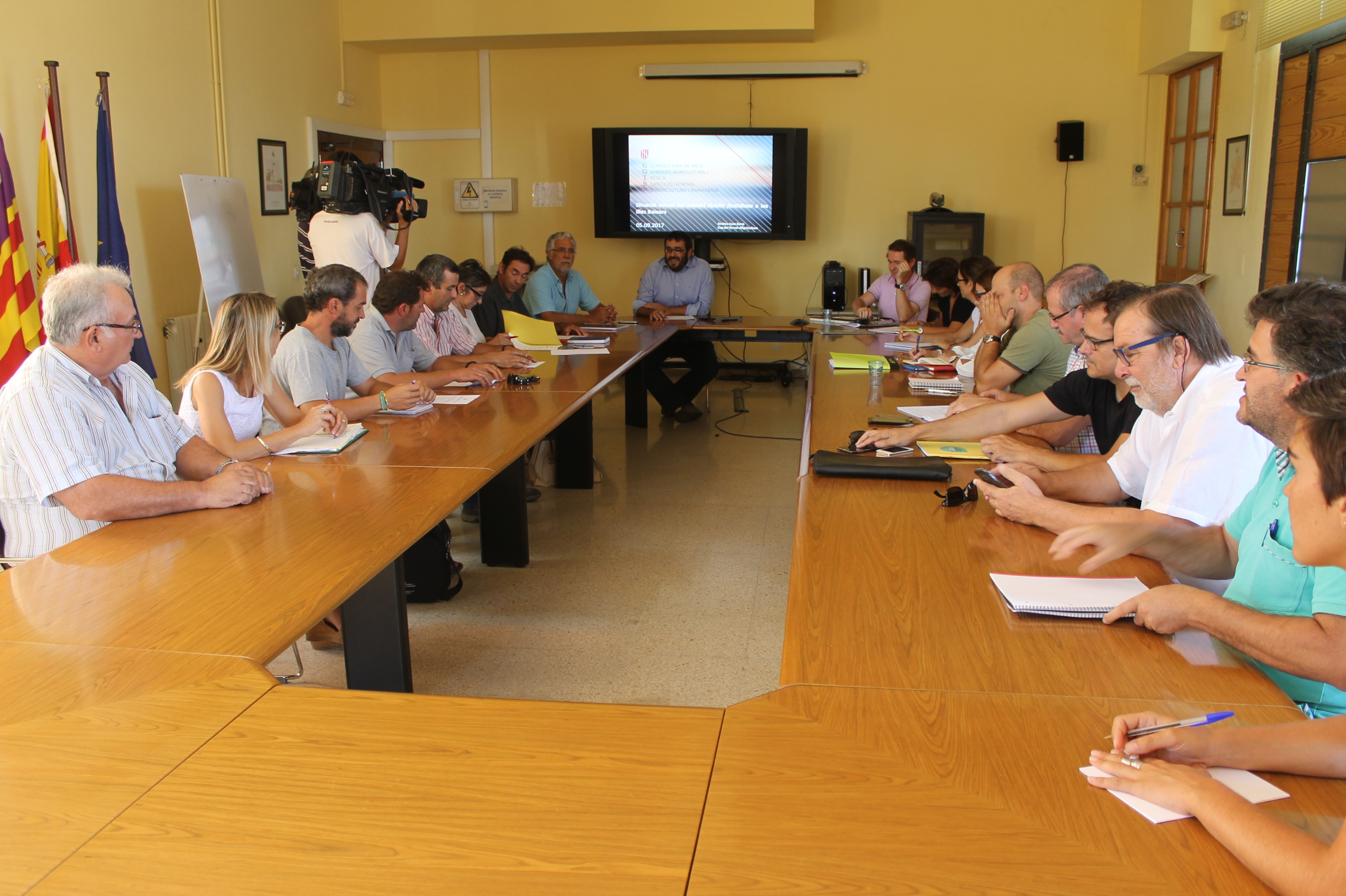@Noudiari/ El conseller de Medio Ambiente, Agricultura y Pesca, Vicenç Vidal, se ha reunido hoy con el sector agrario y ha presidido la primera mesa sectorial vitivinícola para exponer las acciones que se han llevado a cabo para combatir la bacteria Xylella fastidiosa, que se detectó en las Islas Baleares hace diez meses, en octubre pasado, y las que están previstas para el futuro.