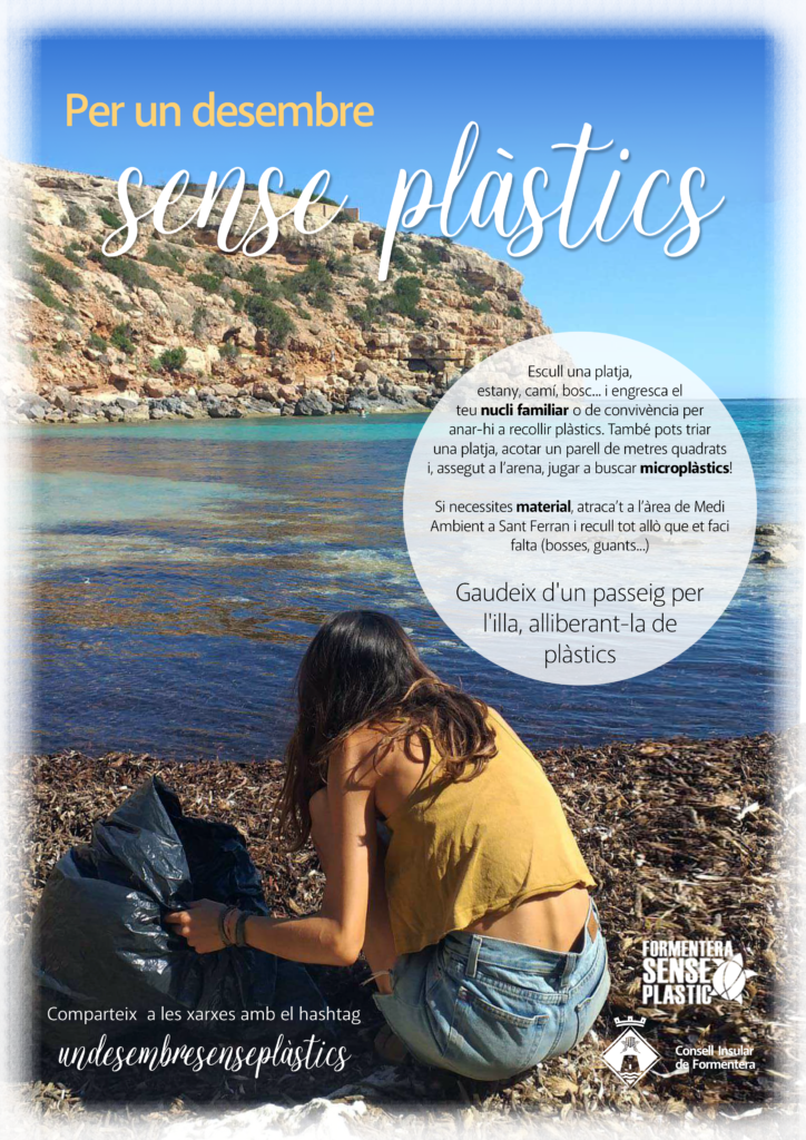 NouDiari / El Consell de Formentera, a través de l’àrea de Medi Ambient, i Plastic Free conviden als ciutadans i ciutadanes a participar durant aquest mes de desembre en petites neteges de plàstic per l’illa en grups reduïts, amb els nuclis familiars o de convivència.