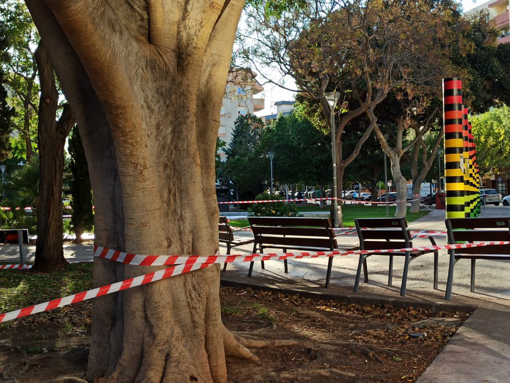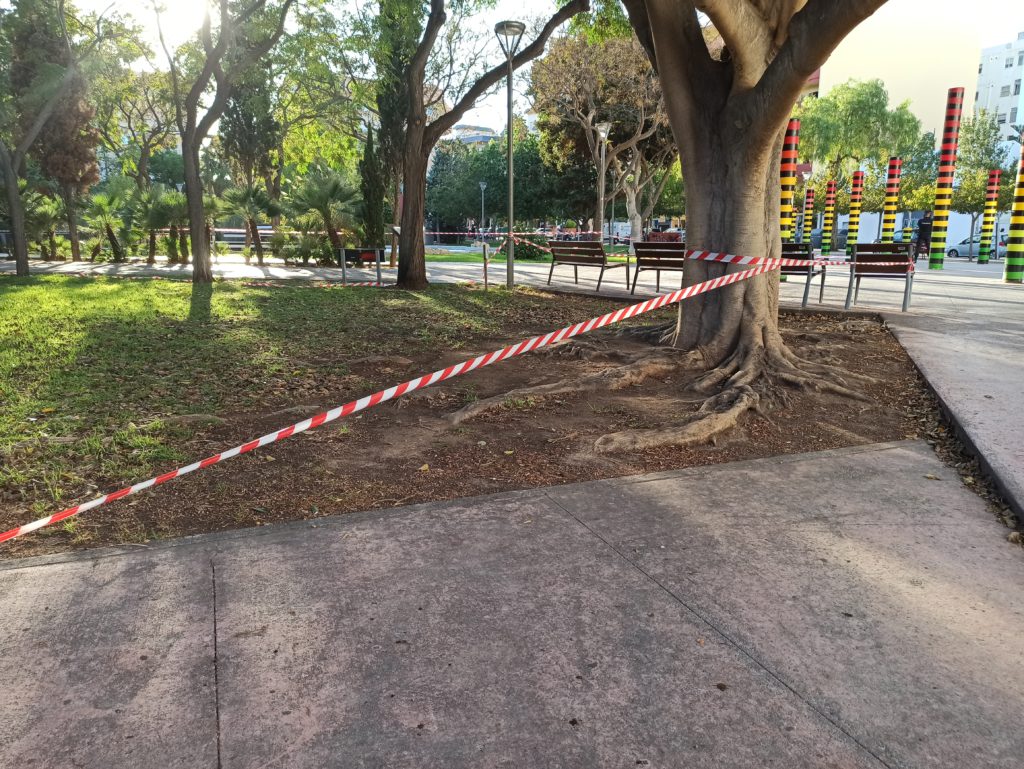 Crecen por tanto las prohibiciones en la zona confinada del municipio de Ibiza, donde ahora, temporalmente, tampoco se puede acceder a buena parte del Parque de la Paz, precintado desde esta misma tarde, como se aprecia en las imágenes que acompañan estas líneas.