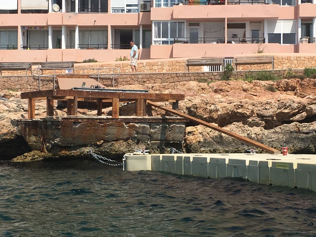 Se trata de un pantalán desmontable con permiso para la temporada de verano, igual que el chiringuito de Cala Gració, aunque en este caso no necesita licencia de actividad. Los puntales, sin embargo, están sobre una base de hormigón.