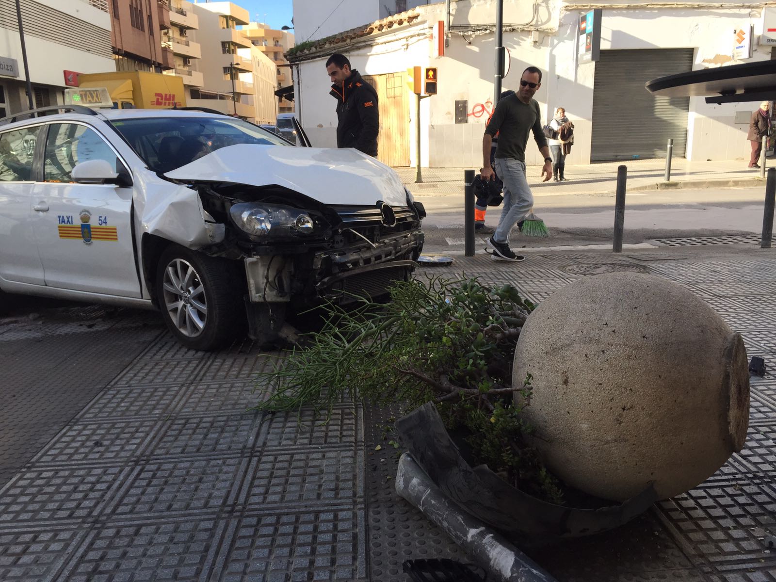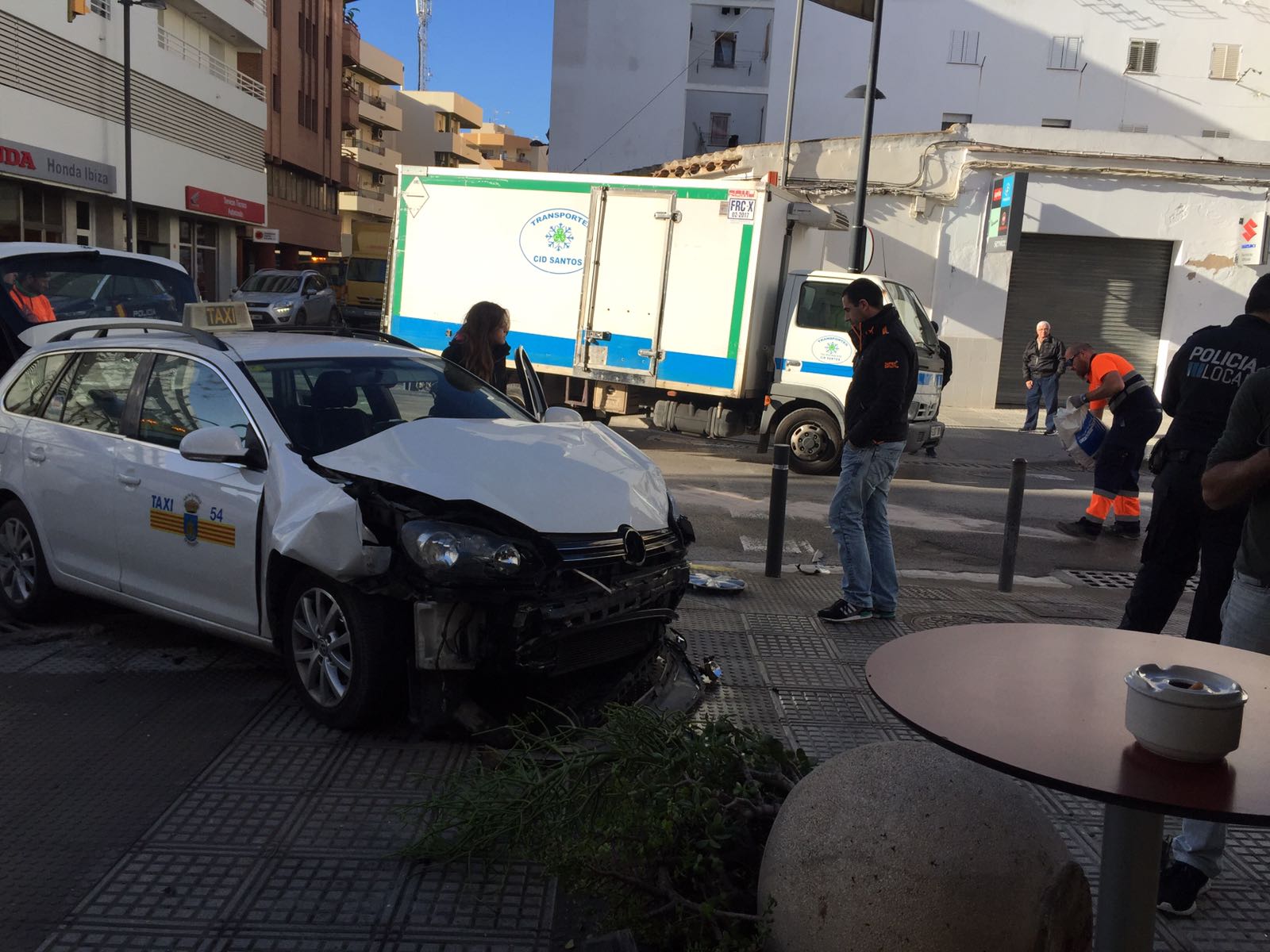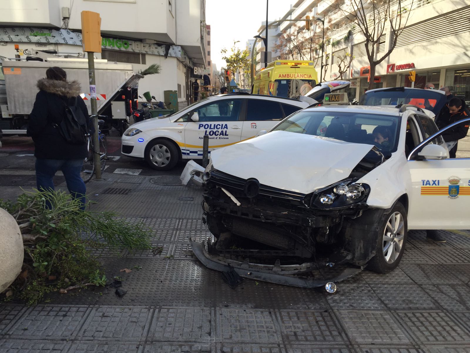La conductora del taxi acudió por su propio pie a la Policlínica del Rosario, según ha informado el Ayuntamiento de Ibiza.