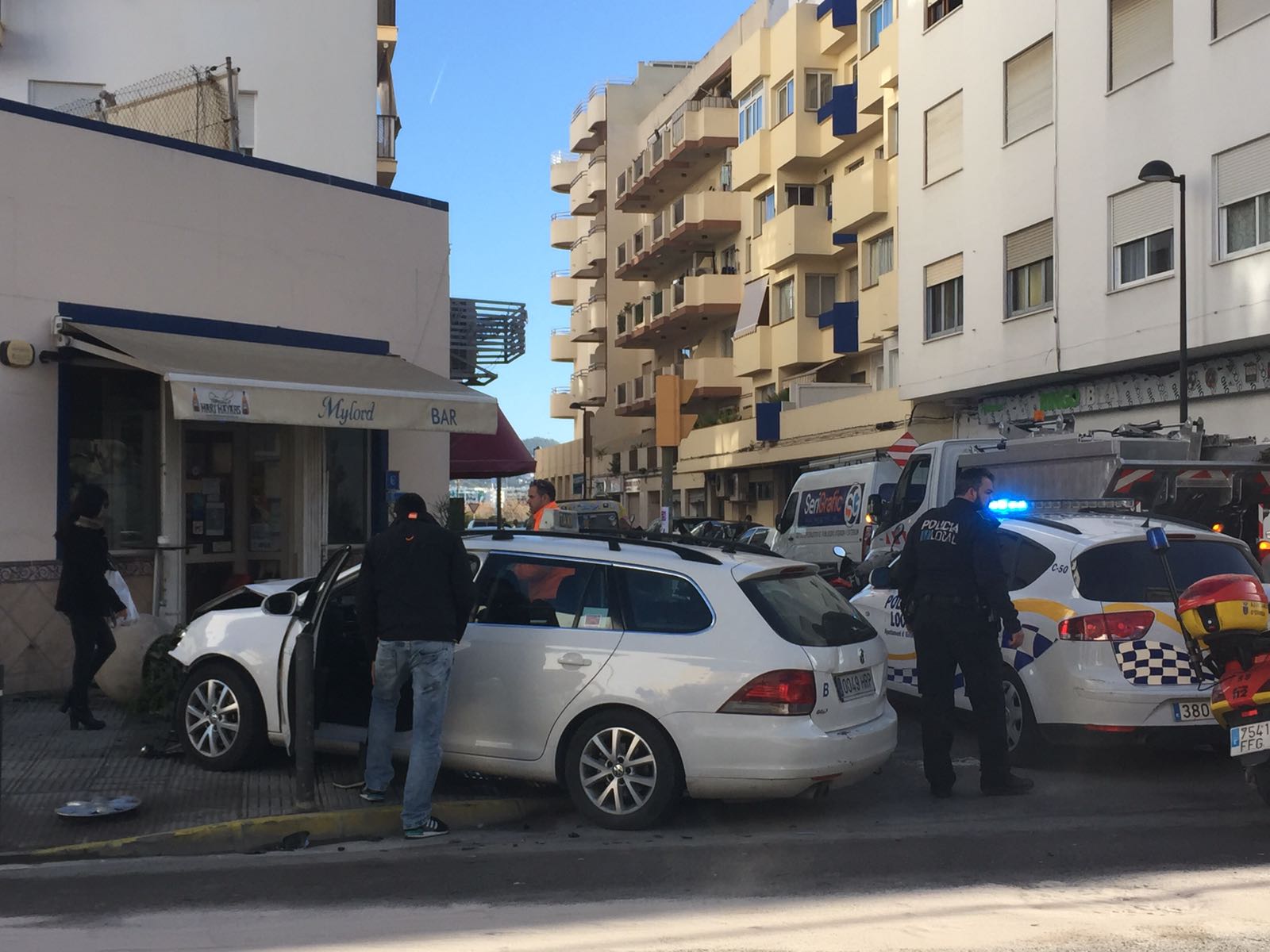 Al lugar del accidente acudieron la Policía Local de Vila y la ambulancia del 061. Los servicios de limpieza también tuvieron que actuar para despejar la calle de cristales y restablecer el tráfico que se vio interrumpido por el accidente.