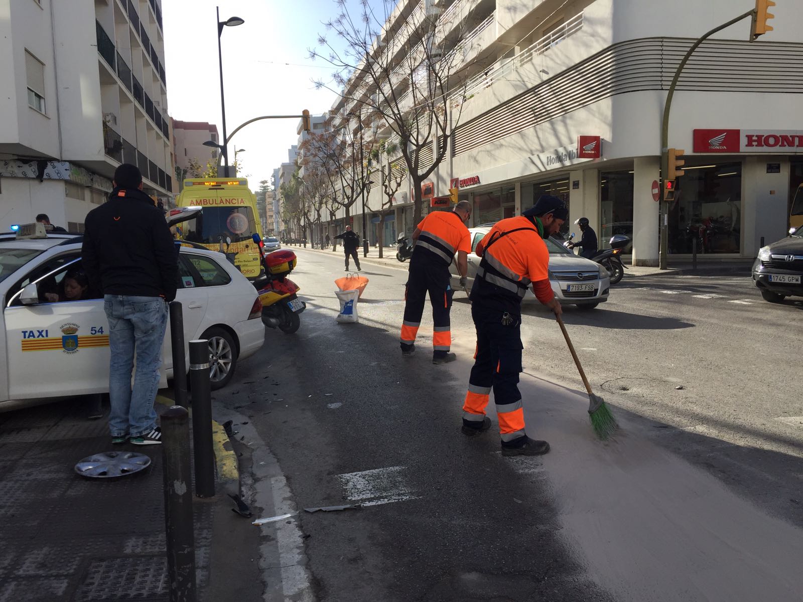 Según el Ayuntamiento de Ibiza, los testimonios recabados por la Policía Local, que aún deben ser corroborados, apuntan a que el taxi, que circulaba por la avenida, se saltó el semáforo en rojo, y colisionó contra el turismo que transitaba por el Carrer de Sant Cristófol.