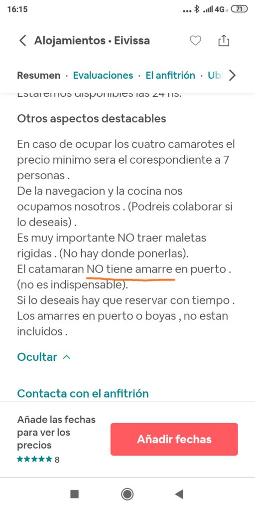 Anuncio de Airbnb facilitado por la plataforma.