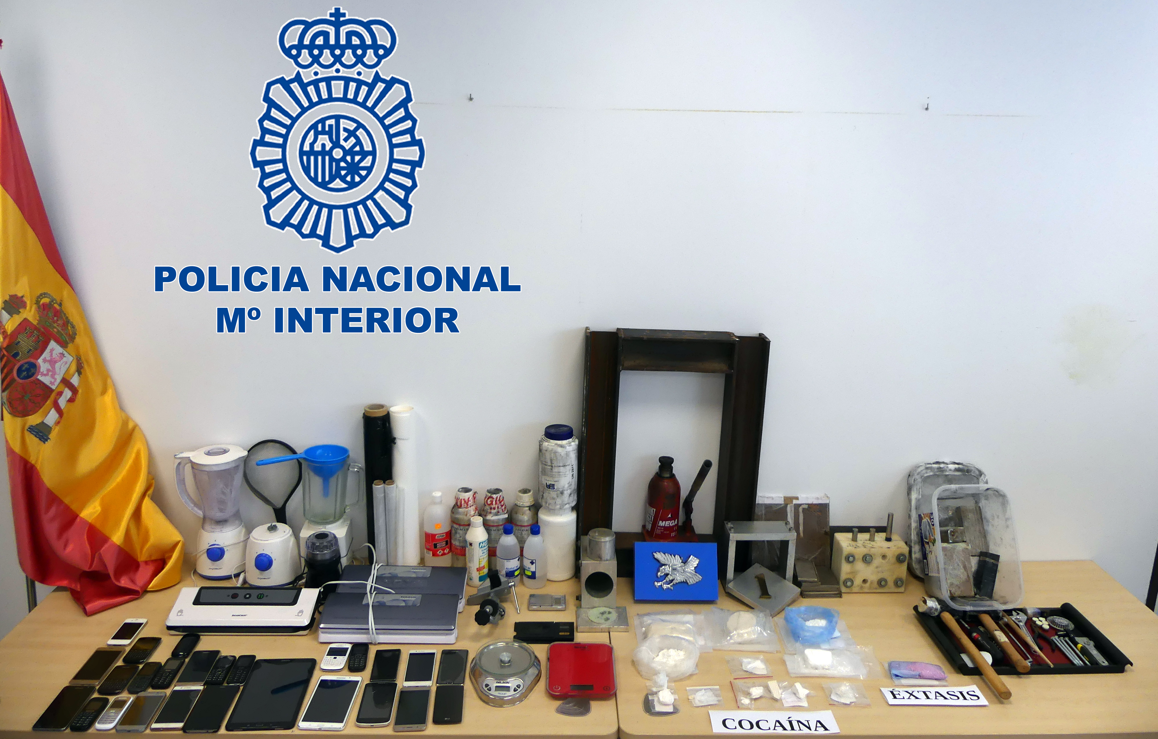 Además, se ha incautado de más de dos kilos de cocaína, 70 grs. de MDMA, más de 5000 euros, 41 teléfonos móviles y varios enseres utilizados para la manipulación de la misma.