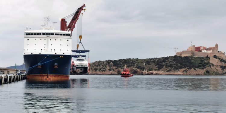 Los dos barcos de alta velocidad que la compañía AquaBús incorporará este verano a la línea regular marítima entre las Pitiusas han sido descargados esta misma mañana en el dique de es Botafoc del puerto de Ibiza. Las embarcaciones proceden de Filipinas y han sido transportadas por el buque ‘UNL Flash’.