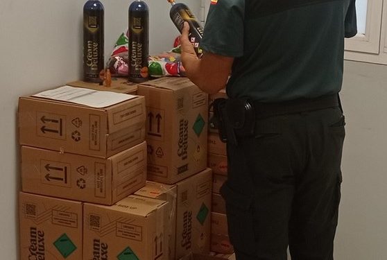 Finalizada la inspección ocular en la vivienda, los agentes procedieron a la detención del titular del arrendamiento, supuesto responsable de las sustancias aprehendidas. Los guardias civiles intervinieron 244 botellas de gran tamaño de óxido nitroso, con sus correspondientes dispensadores, así como 9 bolsas de 80 globos cada unidad.