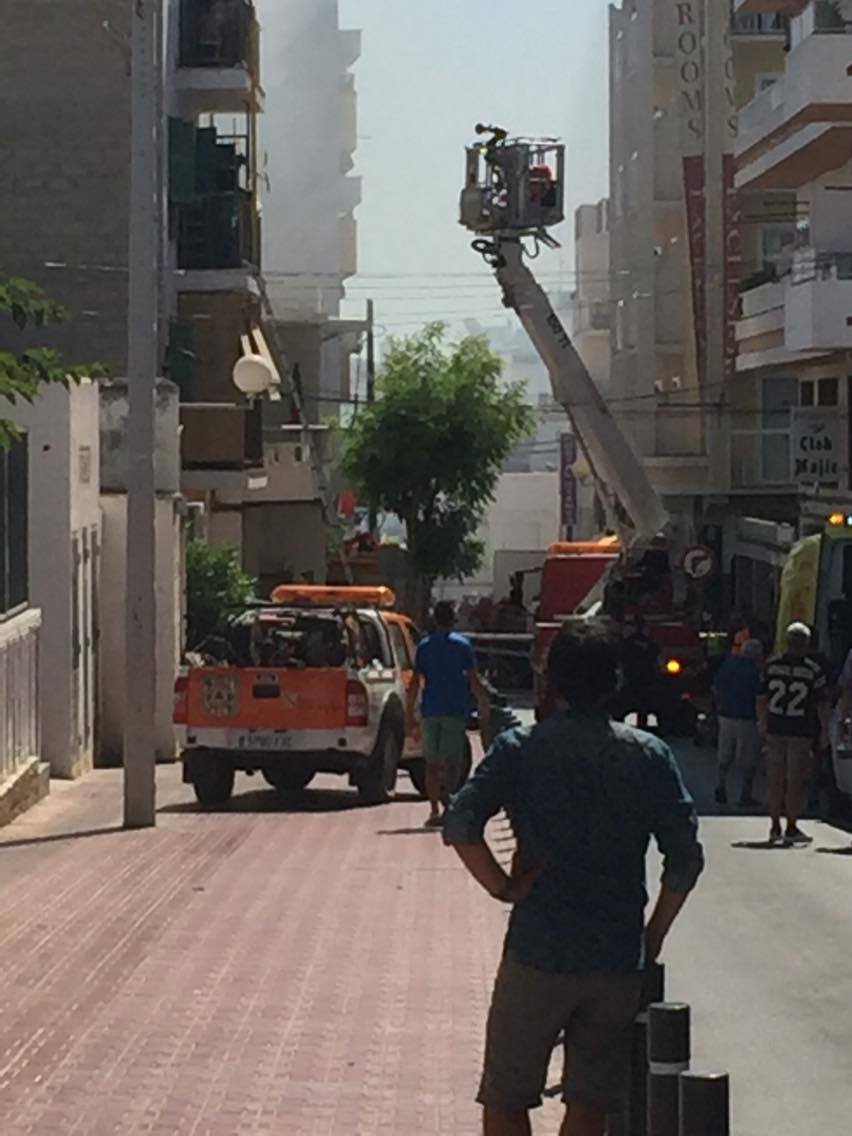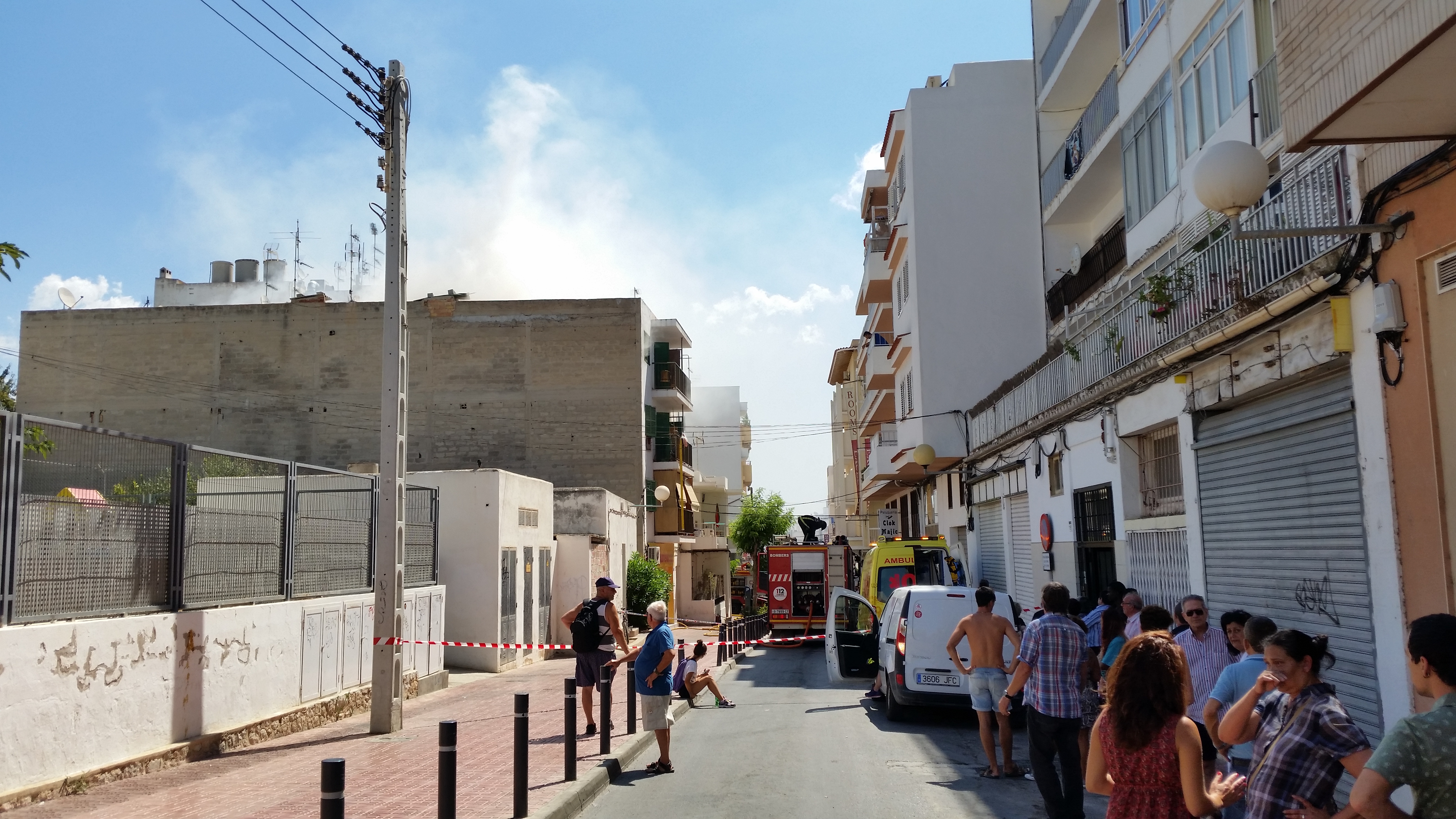 El incendio provocado ha obligado esta mañana a desalojar el edificio de viviendas ubicado en la calle Vara de Rey, en el que han resultado heridas leves dos personas por inhalación de humo, según han informado el Servicio de Salud de Ibiza y Formentera.