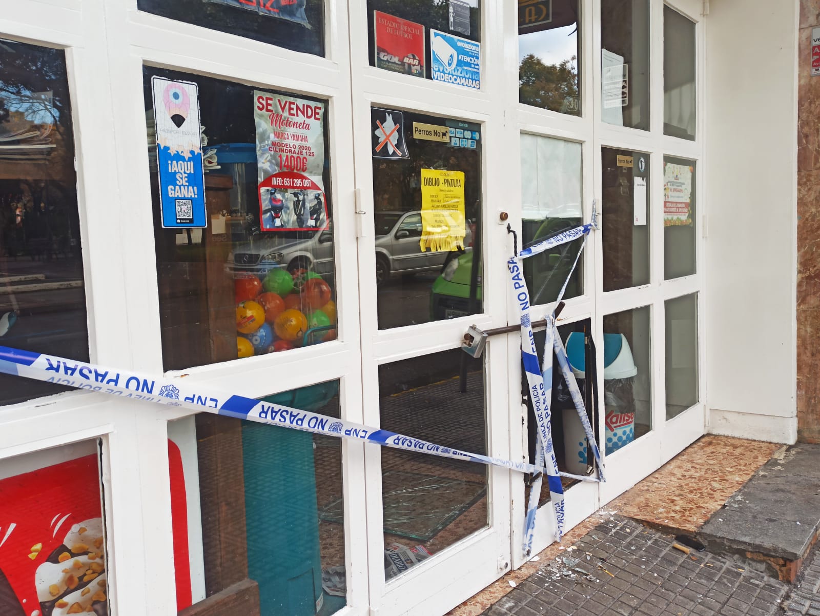 La Policía Local de Ibiza recibió una llamada de un vecino de la zona alertando de ruido en la calle. Una patrulla se desplazó hasta allí y comprobó que los cristales del bar estaban rotos pero que el autor de los hechos ya no se encontraba en el establecimiento.