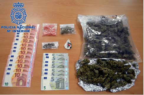 Poco después fue identificada otra motocicleta con dos ocupantes, y el acompañante que viajaba en la parte trasera fue detenido tras encontrarle una riñonera con un total de 50 pastillas de éxtasis, un envoltorio con ketamina, así como hachís y marihuana preparada para su venta. Además de la droga, se le intervino también 185 euros en metálico.