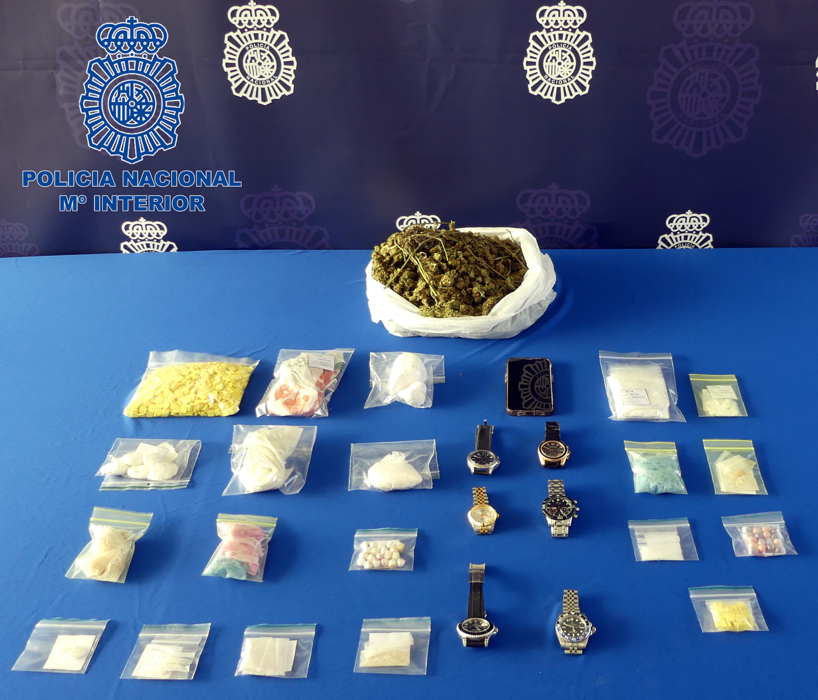 Una vez finalizado el registro, los agentes revisaron también las zonas comunes del hostal, encontrando en diferentes altillos de los baños una cantidad importante de diferentes sustancias estupefacientes (ketamina, cocaína, hachis, extasis, MDMA). Además de seis relojes de alta gama y un teléfono móvil cuya procedencia se está investigando.