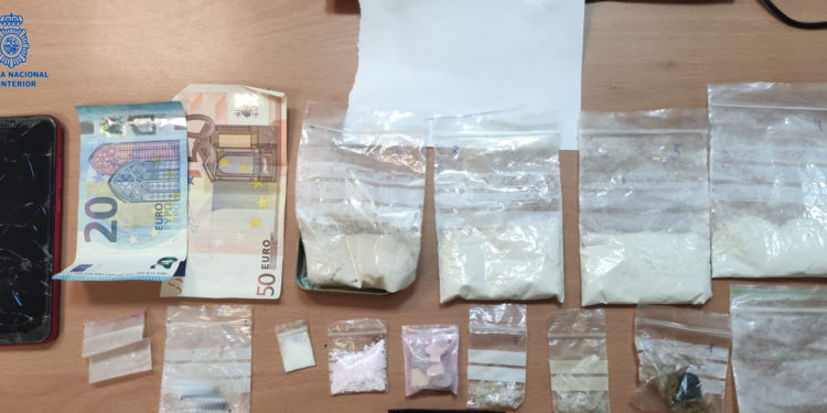Los agentes identificaron y cachearon al individuo y en ese momento encontraron en su poder diversas sustancias: medio gramo de cocaína, 1,35 gramos de tucibi o cocaína rosa; 2,79 gramos de éxtasis; 2,18 gramos de MDMA, otros 48,32 gramos de sustancia blanca polvorienta indeterminada; 1,87 gramos de hachís, además de 70 euros en efectivo.