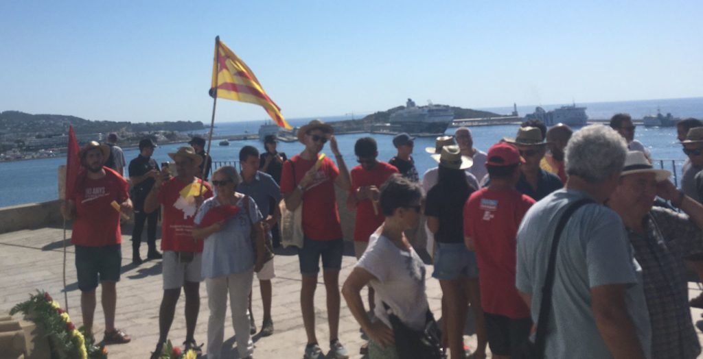 L’acte s’ha celebrat, com cada any, just després de l’ofrena institucional (passades les 10.30 hores), a la zona del mirador Marià Villangómez de Dalt Vila, aconseguint reunir prop d’un centenar de persones. Aquesta és la segona vegada en què, a banda d’Esquerra, també hi participa l’ONG del català.