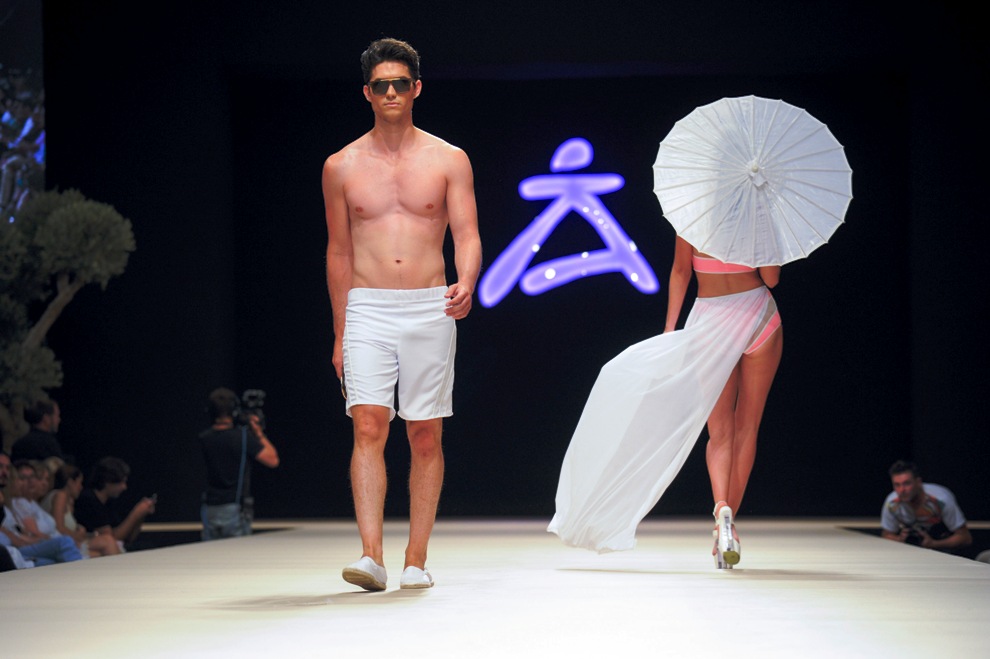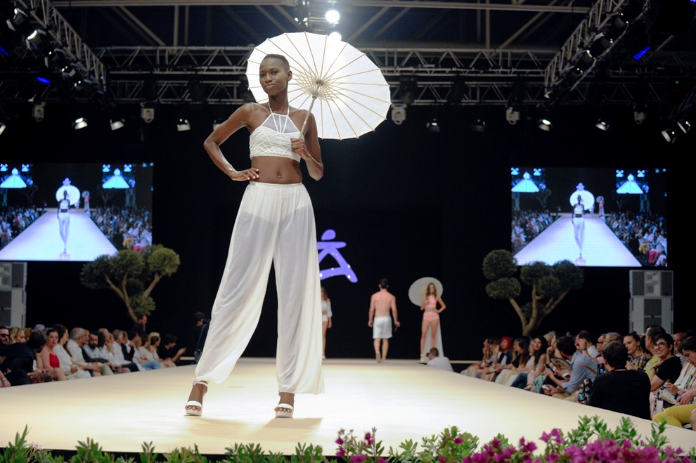 Evitaloquepuedas, la marca de Eva Merino, mostró en la pasarela la colección Evita Sun Collection que, como declara la propia diseñadora, su concepto es el glam beach: «llevar el glamour a la playa», a través de tejidos de punto de seda y colores como el arco iris, colores «fuertes, vivos, alegres, que es lo que provoca la luz de Ibiza».