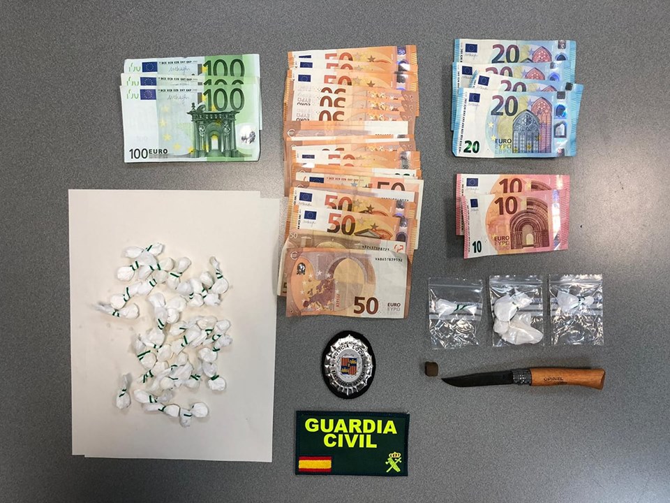 En el mismo intervino también un perro policía detector de drogas, Rino. Los efectivos policiales se incautaron en el dispositivo de más de 30 dosis de, supuestamente, cocaína e intervinieron, asimismo, un total de 1.500 euros a las dos personas detenidas, que fueron arrestadas por un delito contra la salud pública.