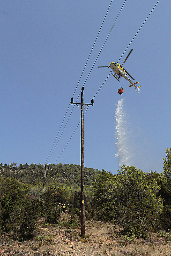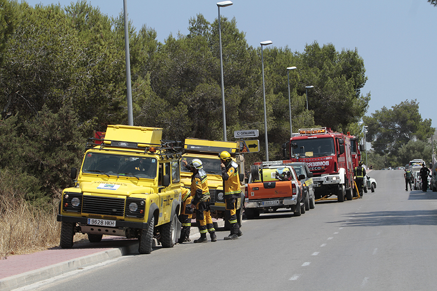 Los bomberos han enviado a cinco efectivos con dos camiones, que han trabajado conjuntamente con los medios aéreos del Ibanat. El fuego ha comenzado a unos 50 metros de la carretera que da acceso a Sa Talaia y ha afectado a una superficie de 0,13 hectáreas.