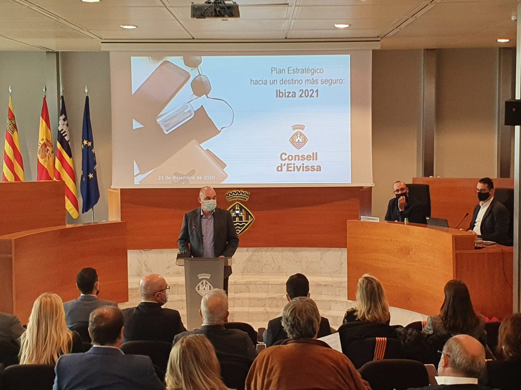 NouDiari / El Consell Insular d’Eivissa ha presentat aquest matí el Pla Estratègic ‘Cap a una destinació Segura 2021‘, una iniciativa elaborada en col·laboració amb els diferents agents socials i els principals grups turístics de l’illa per tal d’establir una estratègia que garanteixi la preservació de la salut dels residents i dels visitants.