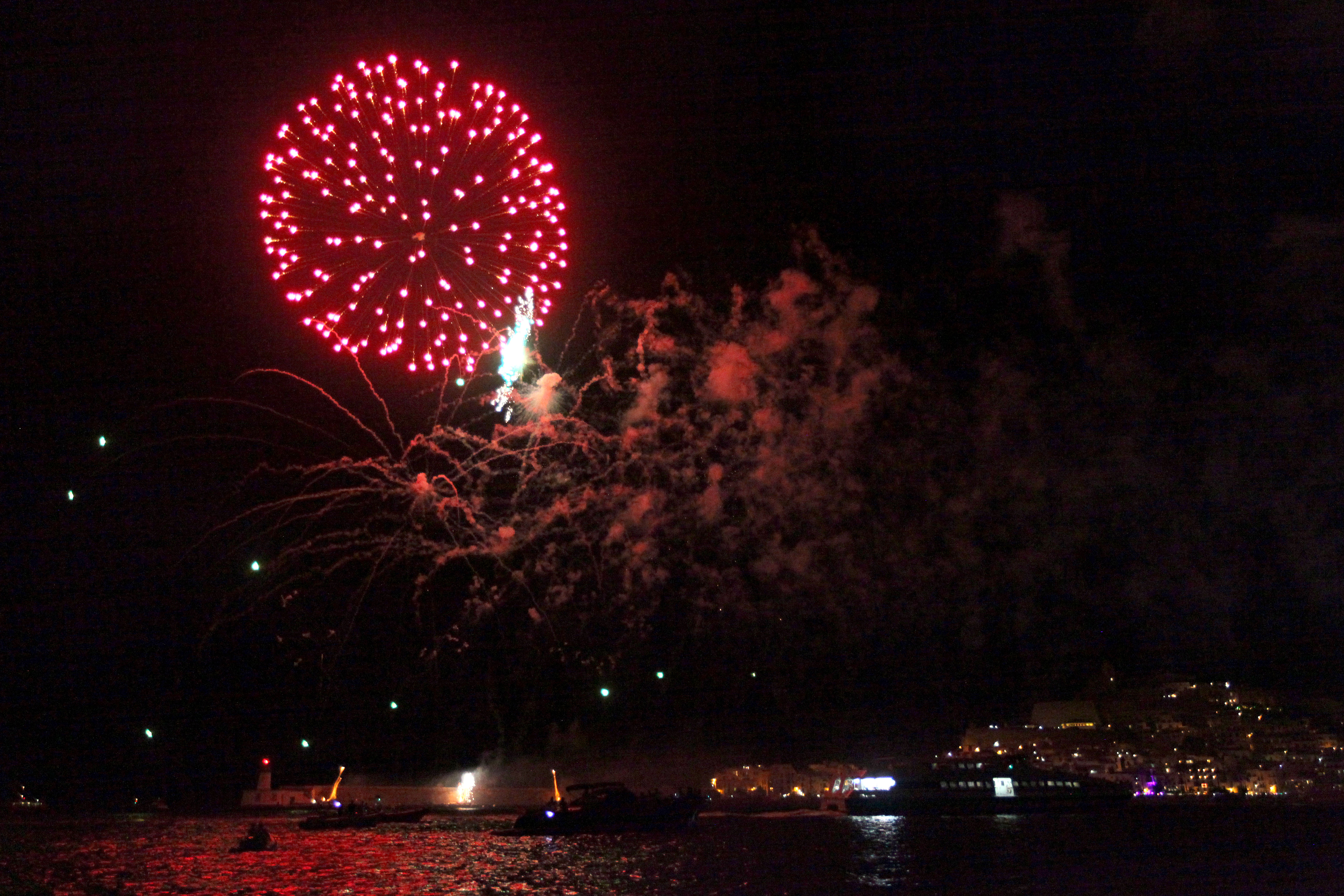 @Noudiari / Casi 20 minutos de explosiones de colores inundaron el cielo de Vila para celebrar el final de la fiesta del 8 de agosto, día de Sant Ciriac patrón del municipio de Eivissa. Residentes y turistas miraron al cielo a media noche para disfrutar del espectáculo que se incluye dentro del programa de Festes de la Terra que tendrá su traca final el próximo 15 de agosto en ses Figueretes.