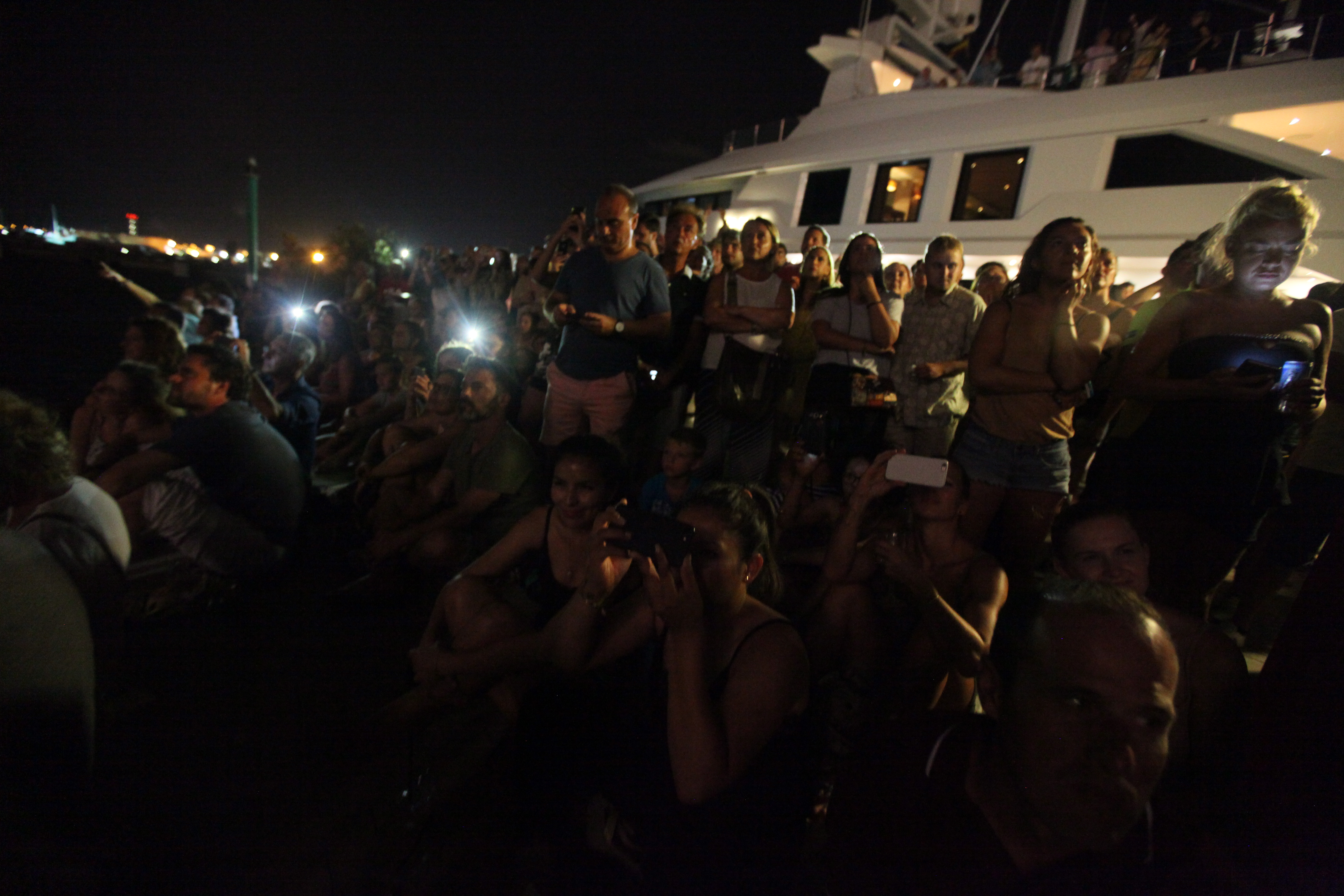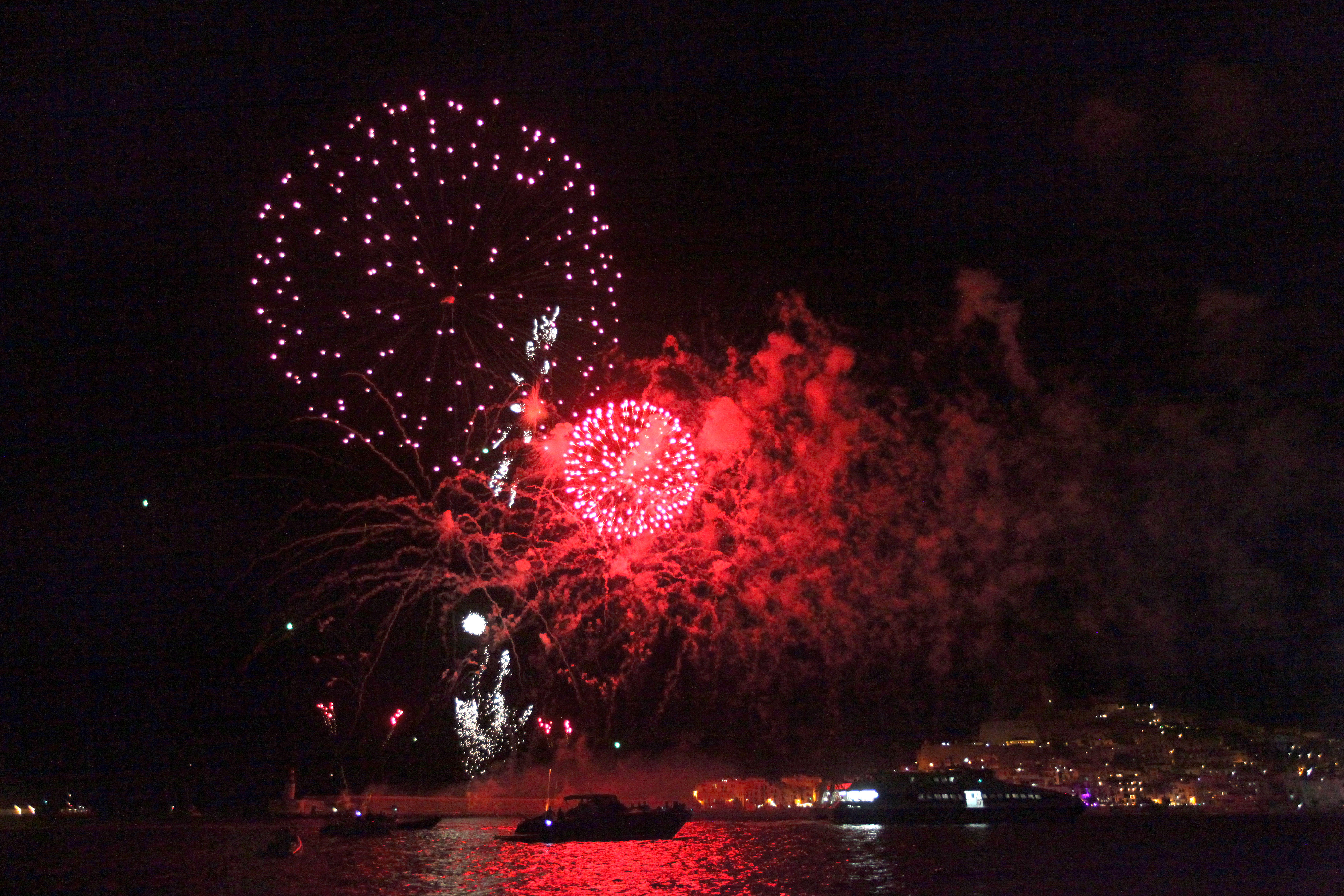 Anoche, se abrió por primera vez, la explanada del Muelle Norte o Muelle Comercial del puerto para ofrecer una de las mejores ubicaciones desde donde disfrutar de la espectáculo pirotécnico que quemó 500 kilos de pólvora desde el puerto viejo. No obstante, terrazas de bares y restaurantes, de casas, barcos, y otros puntos del puerto y alrededores fueron también platea de los espectadores.
